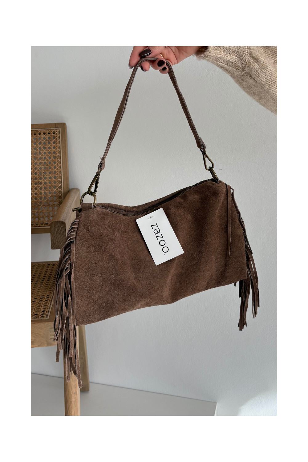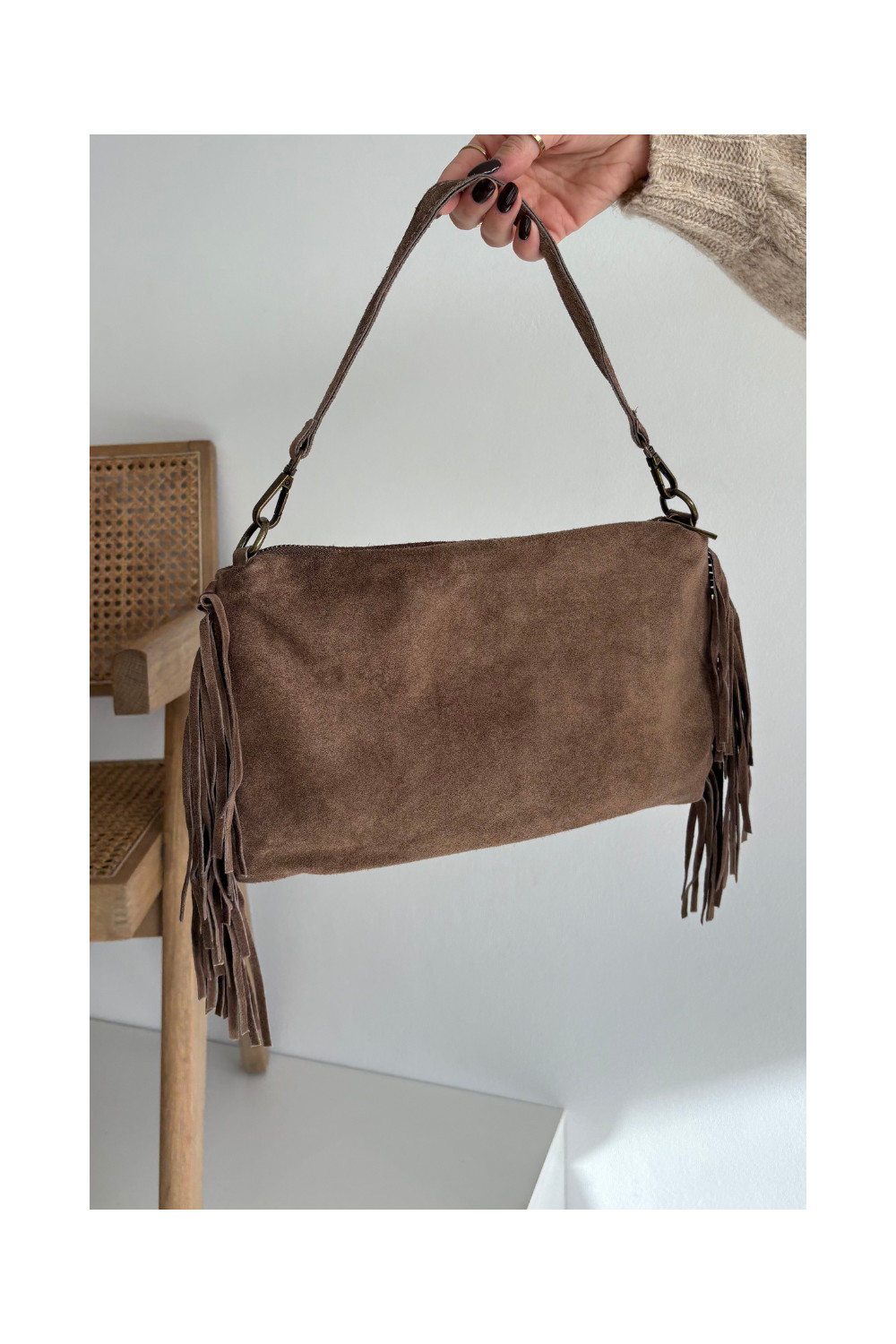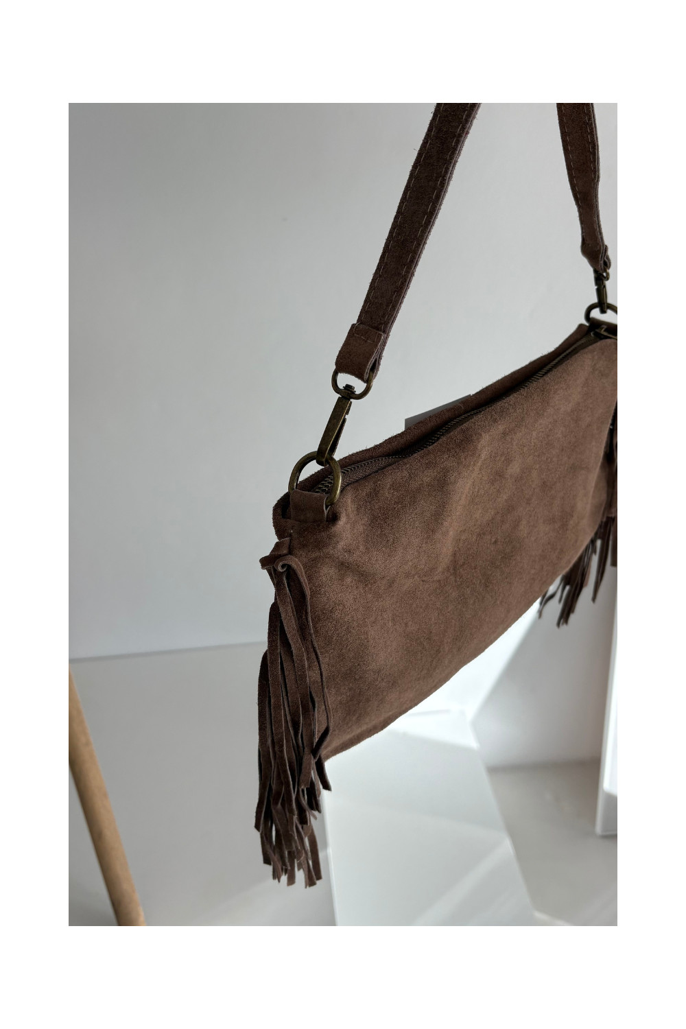 Skórzana Zamszowa Kabelka se střapci hnědá Jessira