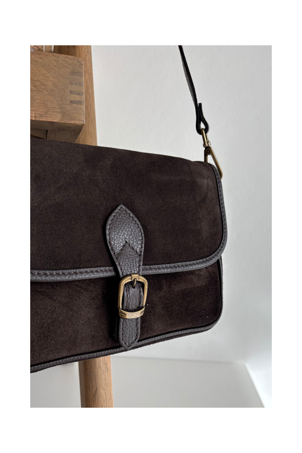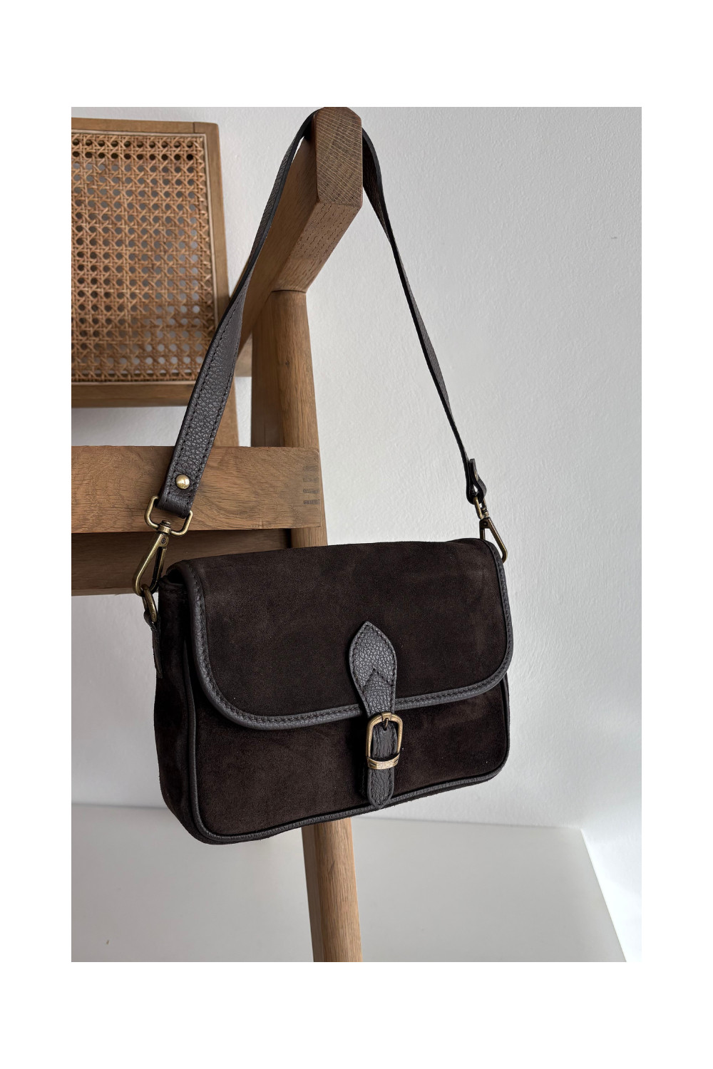 Skórzana Zamszowa Kabelka Czekoladowa Norla