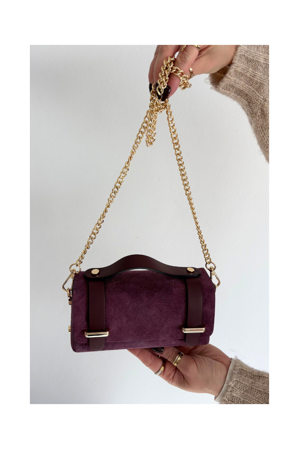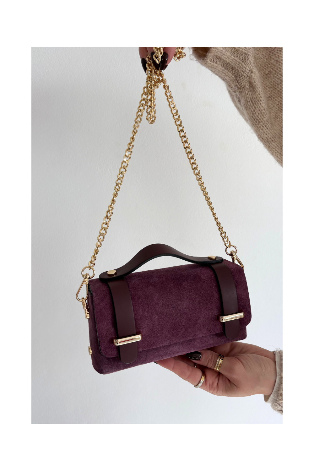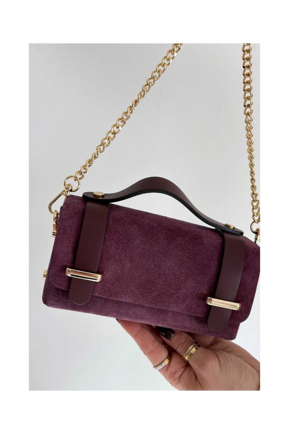 Kabelka Z Naturalnego Zamszu s řetízky Fialová Nivra