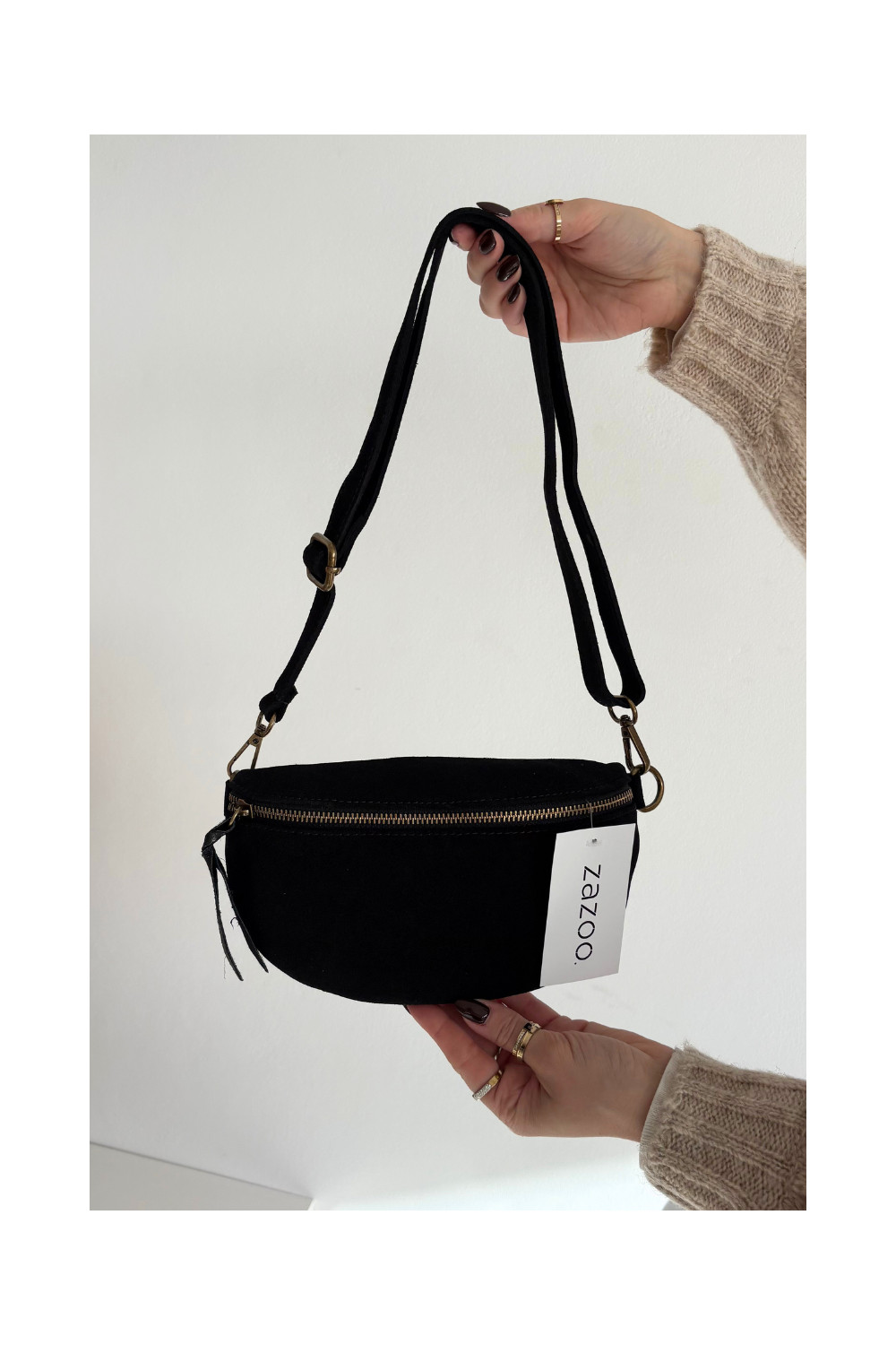 Skórzana Zamszowa Kabelka na trupu Černé Wessa