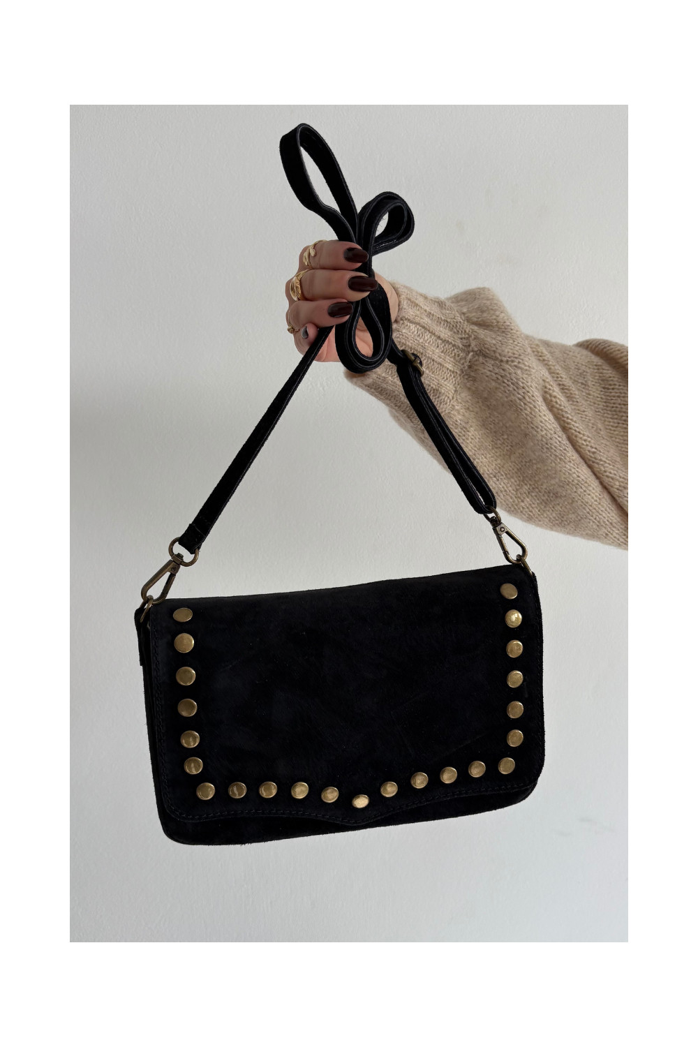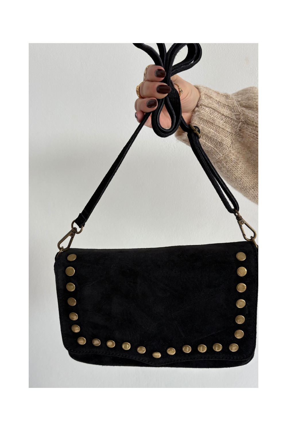 Zamszowa Kožená kabelka s nýty černá Rhenna