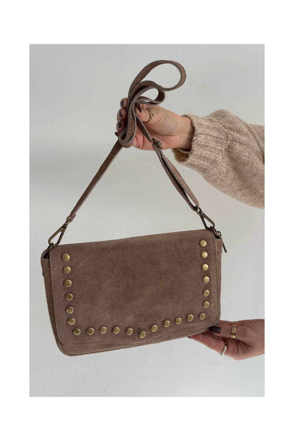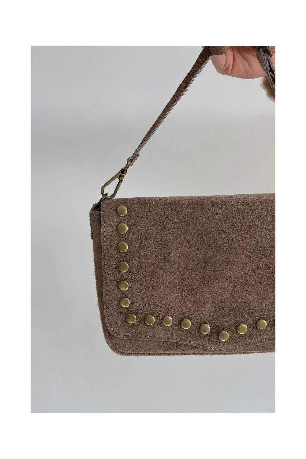 Zamszowa Kožená kabelka s nýty slonová kost Rhenna