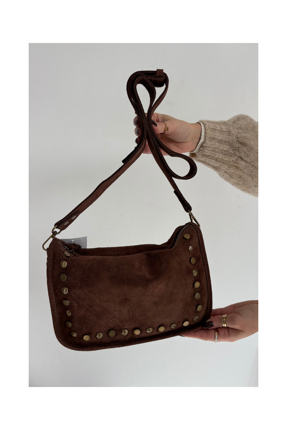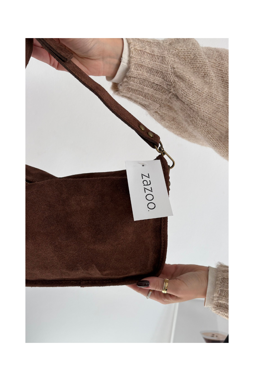 Skórzana Zamszowa Kabelka Zdobiona hnědá Savra