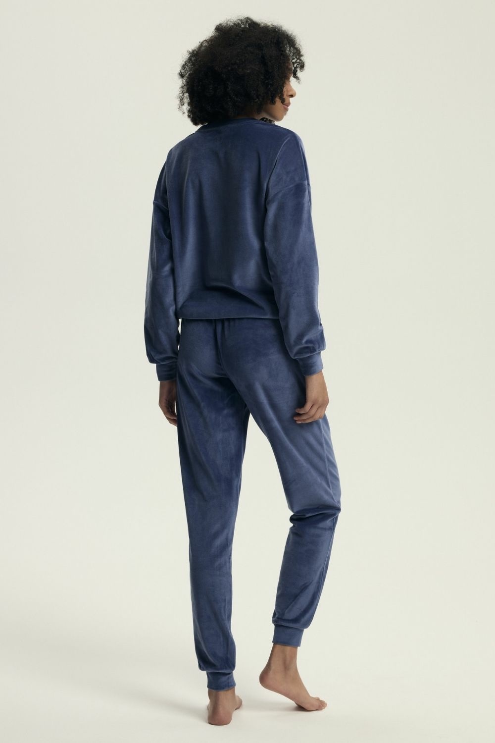 Comfortable tracksuit set with a loose, comfortable cut, perfect for everyday wear as well as homewear. The long-sleeved sweatshirt finished with a ribbed cuff ensures freedom of movement and a sporty look. Long pants with slip pockets, a wide elastic waistband, and drawstrings at the waist guarantee a perfect fit and comfort. The cuffs at the bottom of the legs give the whole a modern, casual character. An ideal set for relaxation, walks, or casual everyday styling.