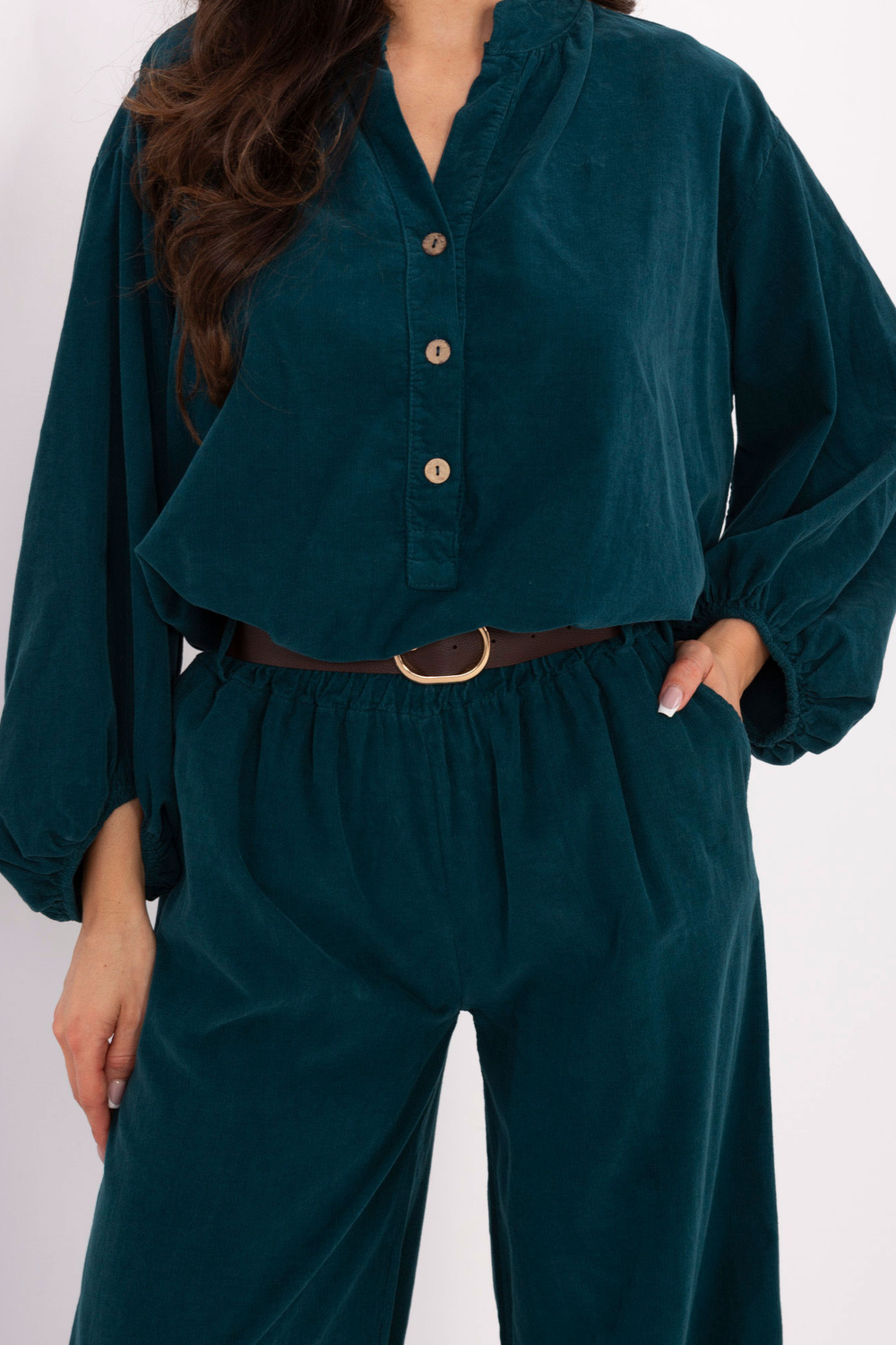 Model nosí oblečení jedné velikosti. Rozměry modelu: výška 173 cm, obvod hrudníku 85 cm, pas 62 cm, boky 95 cm.