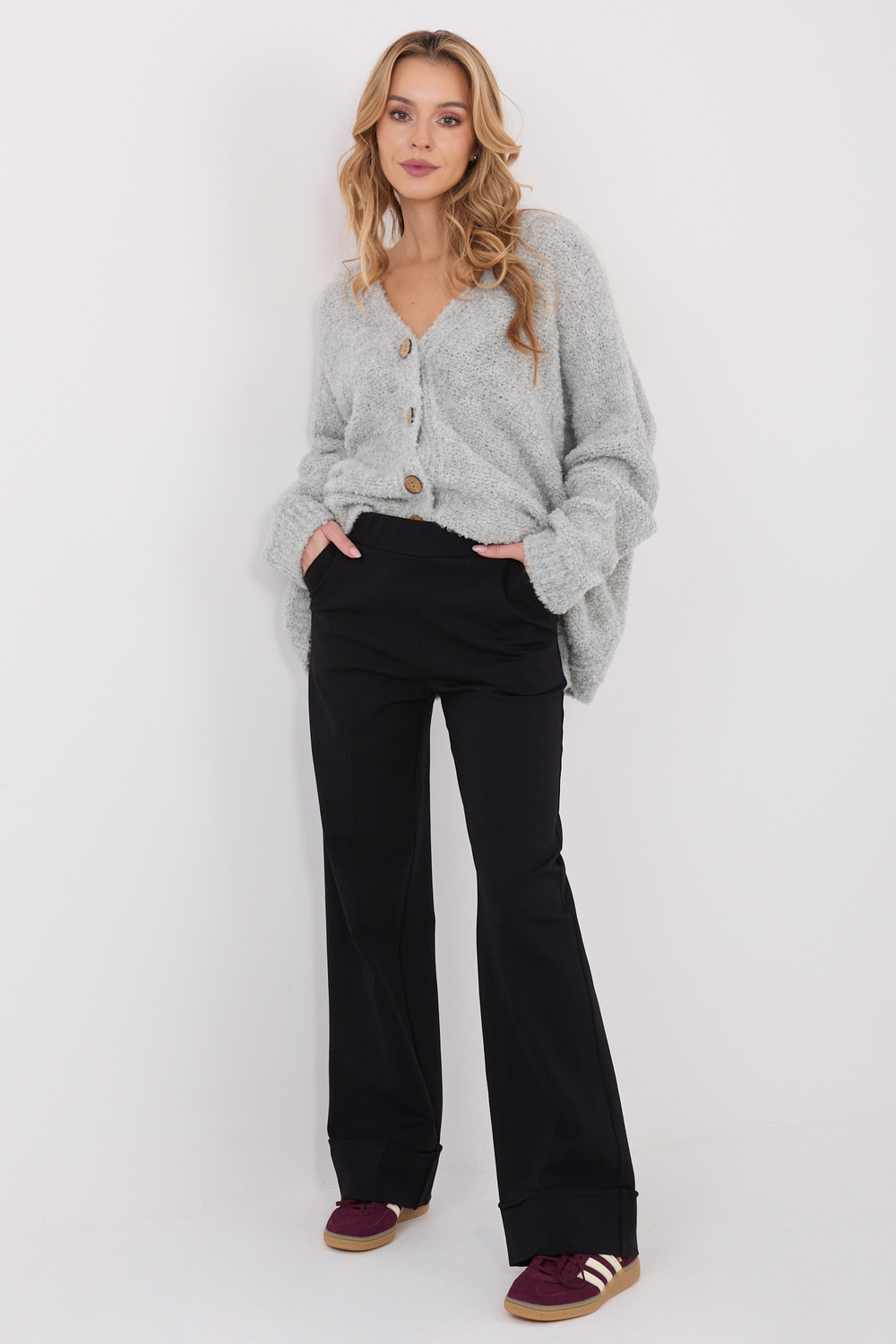 Model nosí velikost S/M. Rozměry modelky: výška 169 cm, prsa 88 cm, pas 68 cm, boky 89 cm.