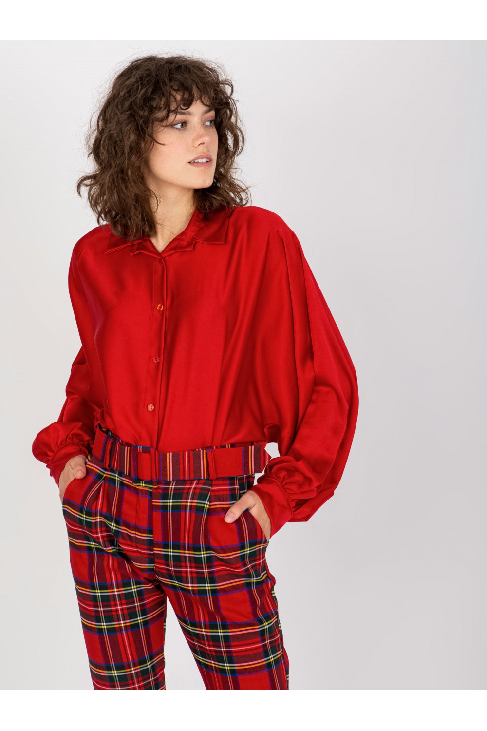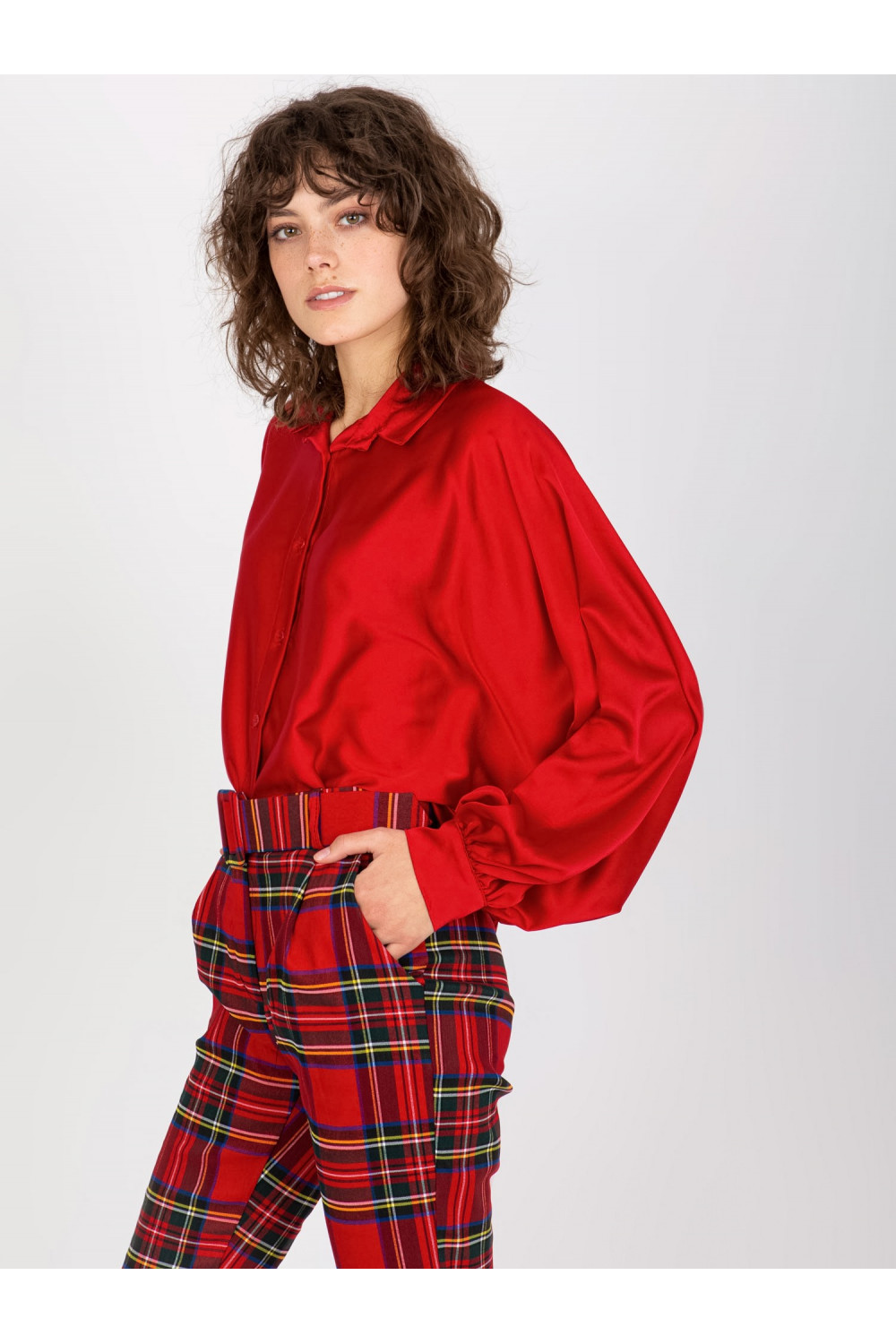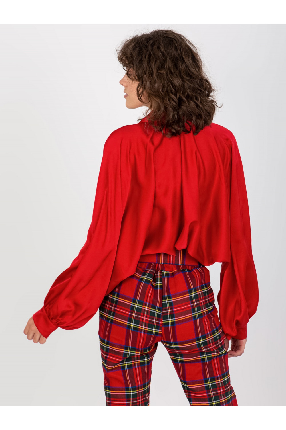 Tmavě červená imitace saténové košile s širokými rukávy Cristina.