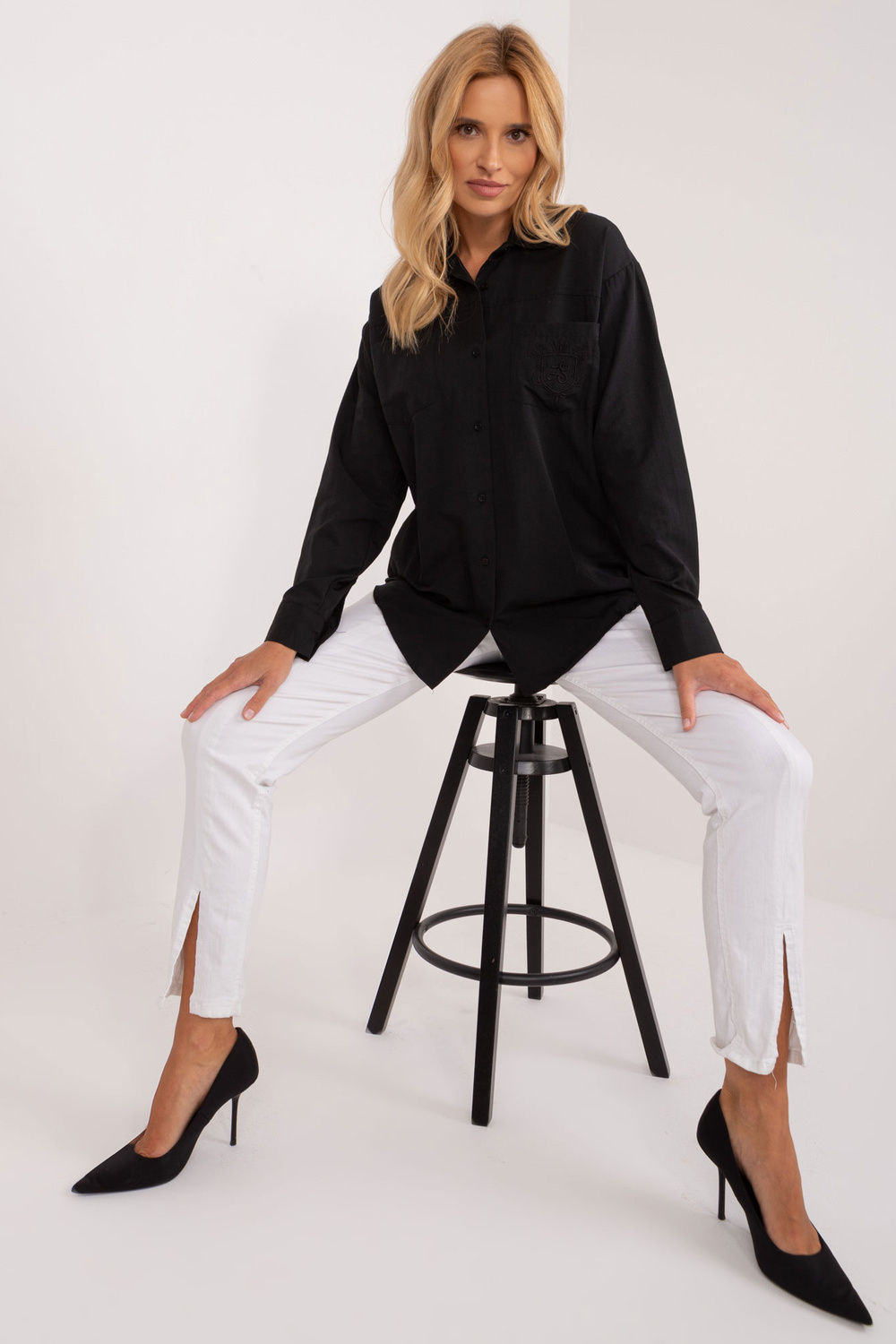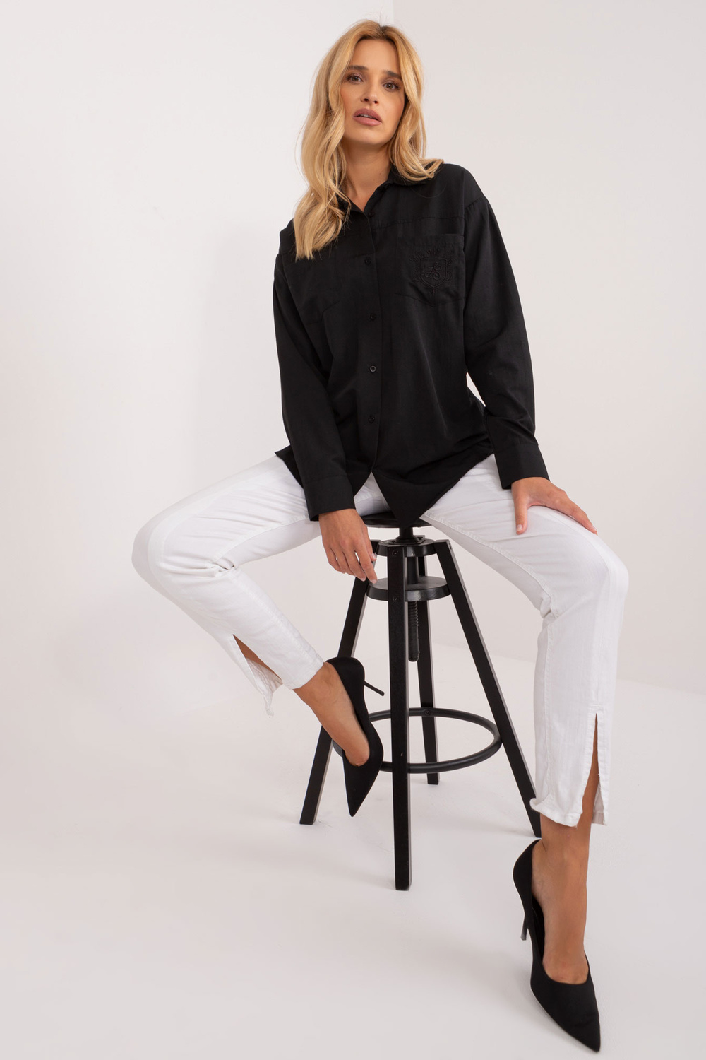 Rozměry košile velikosti S, měřeno naplocho: šířka v podpaží - 51 cm, délka rukávu - 61 cm, celková délka (vpředu) - 65 cm, celková délka (vzadu) - 72 cm.