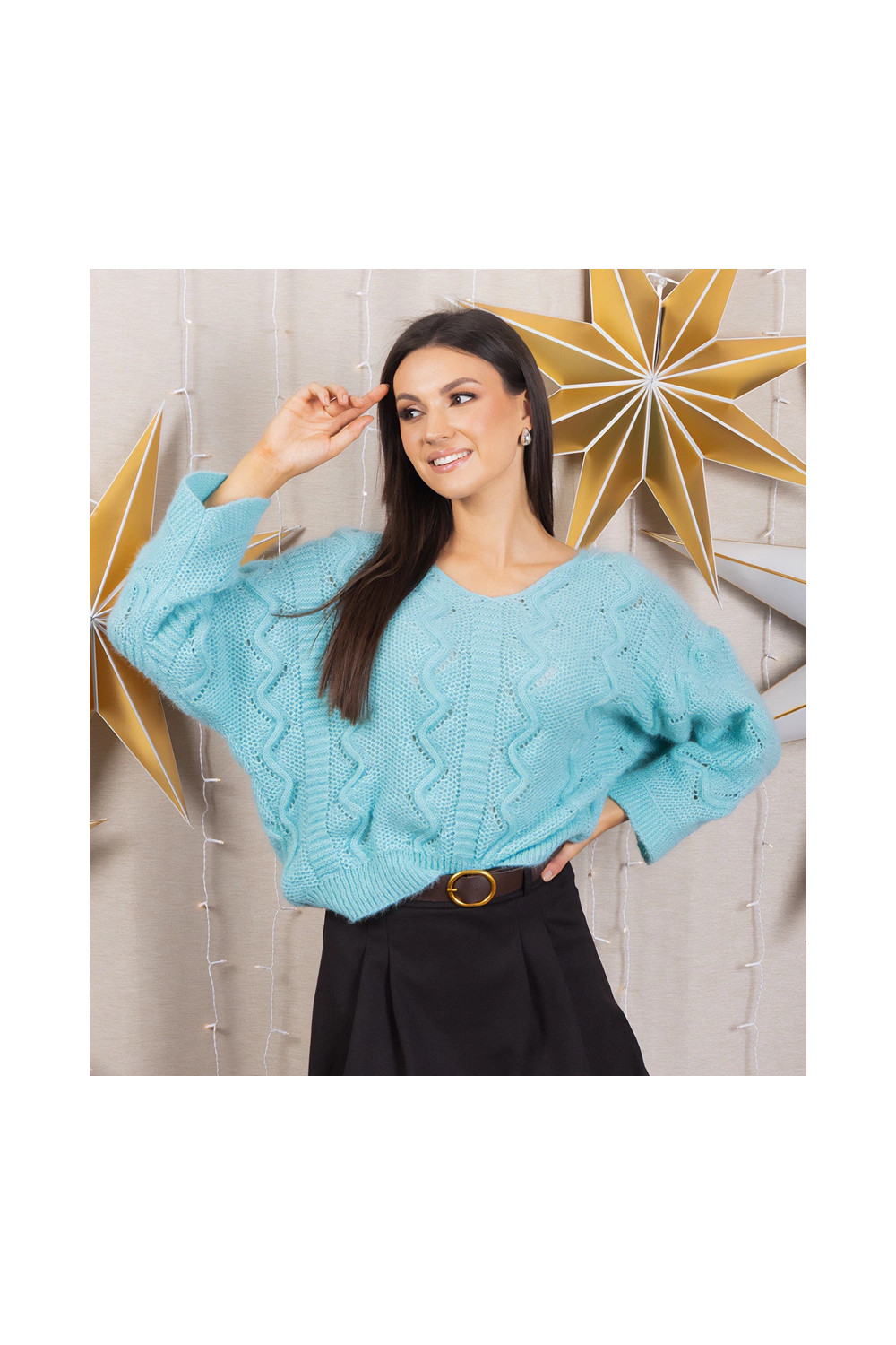 Měkký mintový svetr s dlouhým rukávem Rianne