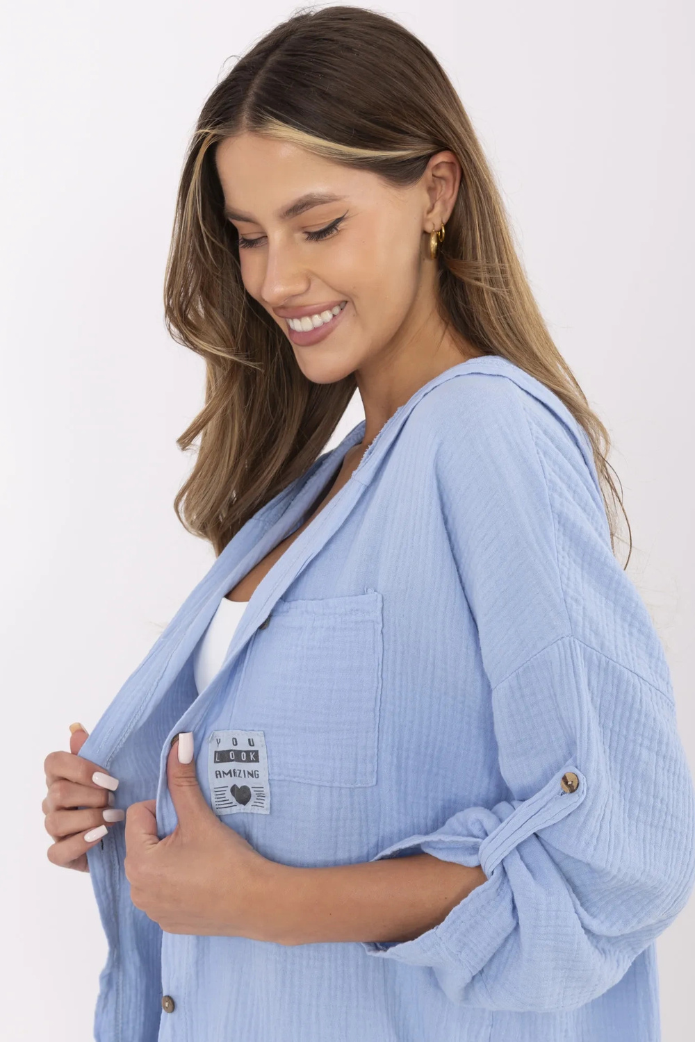 Míry košile univerzální velikosti měřeno v plochém stavu: šířka v podpaží - 61 cm, délka rukávu - 42 cm (od švu), šířka boků - 53 cm, celková délka - 69 cm.