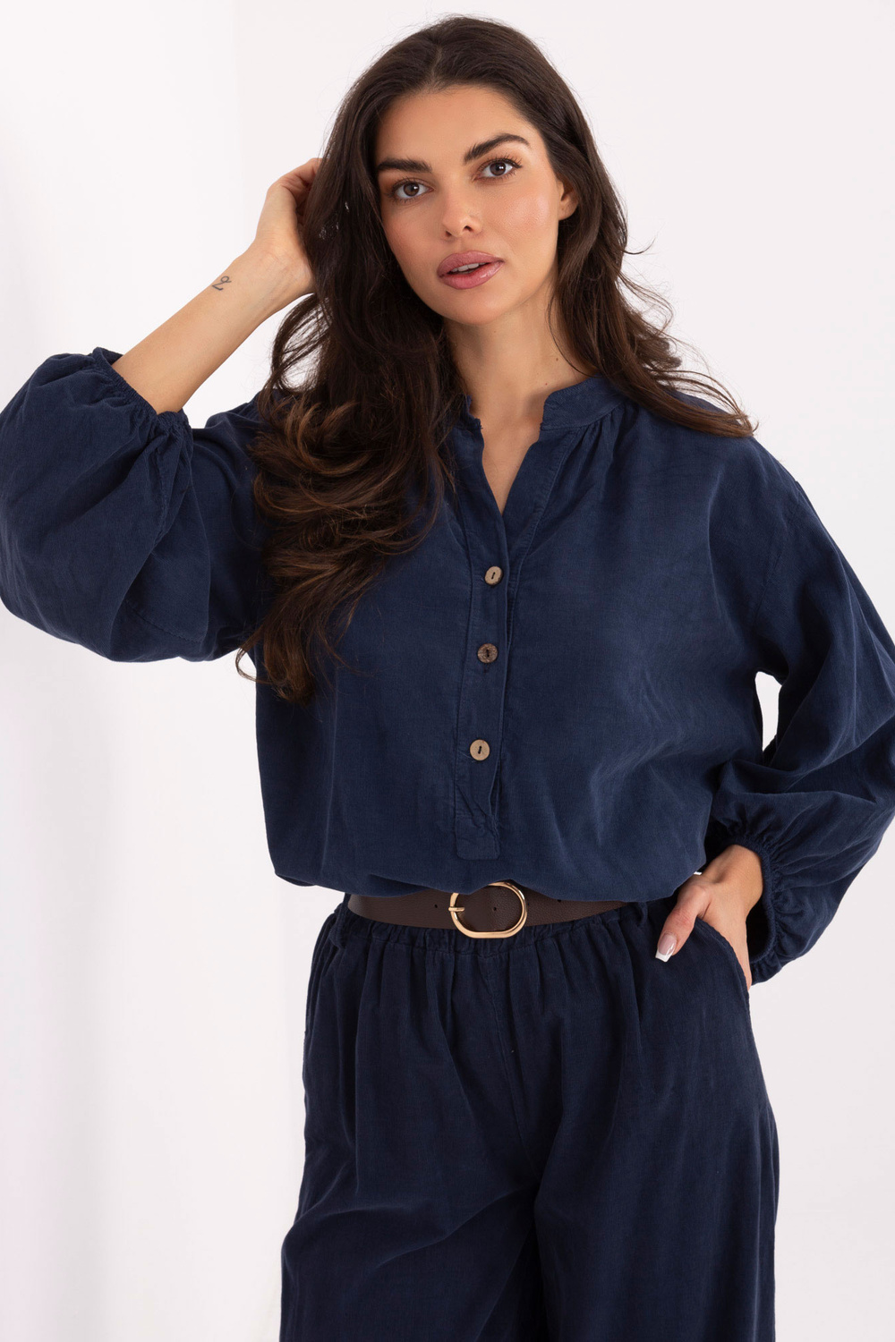 Rozměry halenky jedné velikosti měřené na rovno: šířka pod pažemi – 66 cm, celková délka – 66 cm (vpředu), celková délka – 77 cm (vzadu), šířka dole – 76 cm, délka rukávů – 51 cm (od švu).