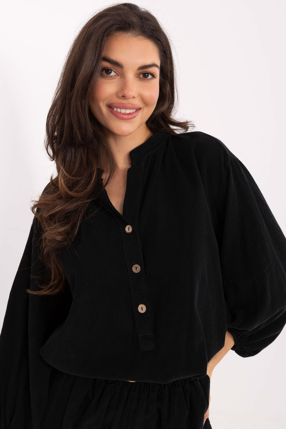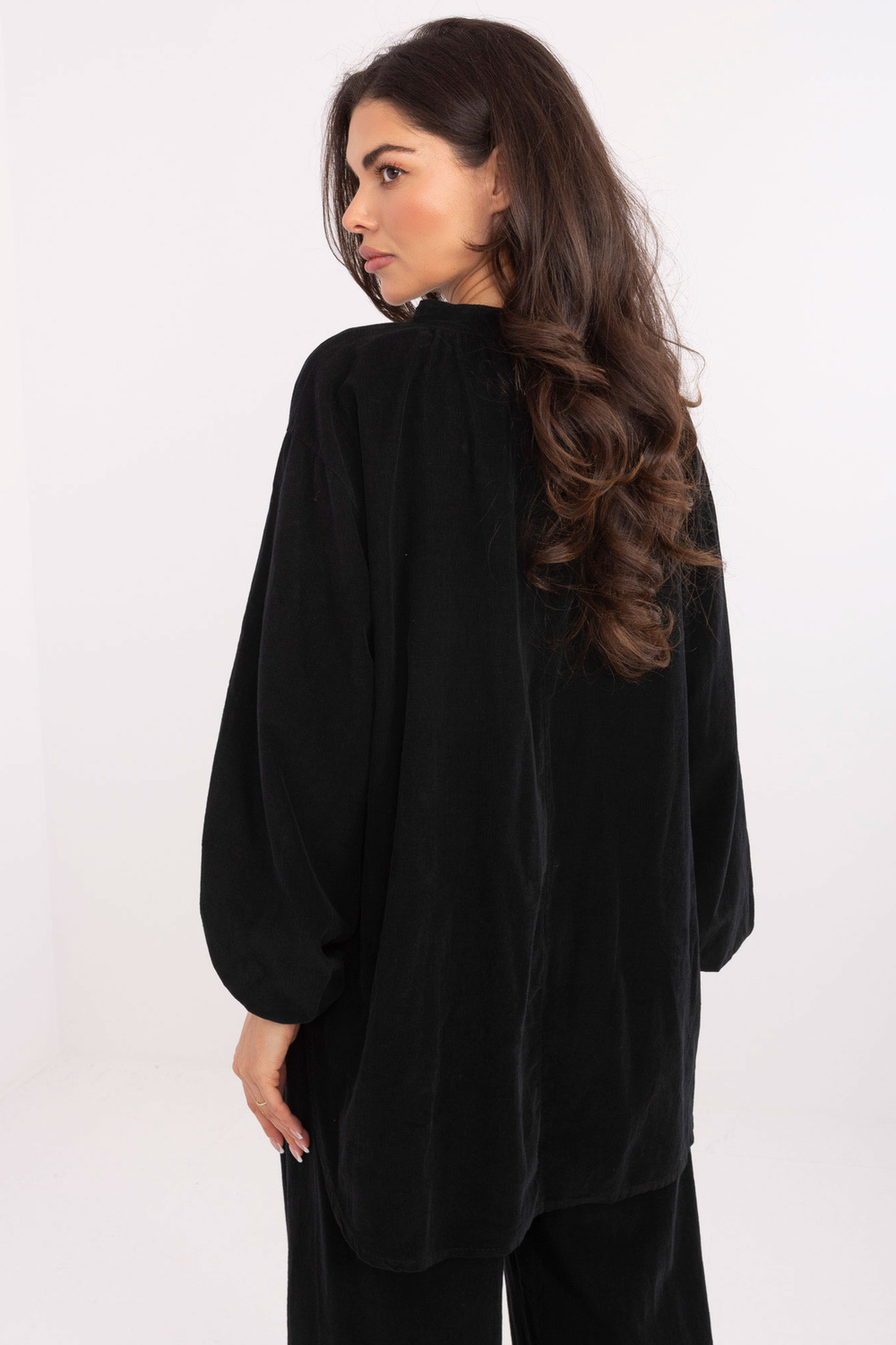 Rozměry halenky univerzální velikosti měřené vleže naplocho: šířka pod pažemi - 66 cm, celková délka - 66 cm (vpředu), celková délka - 77 cm (vzadu), šířka dole - 76 cm, délka rukávu - 51 cm (od švu).