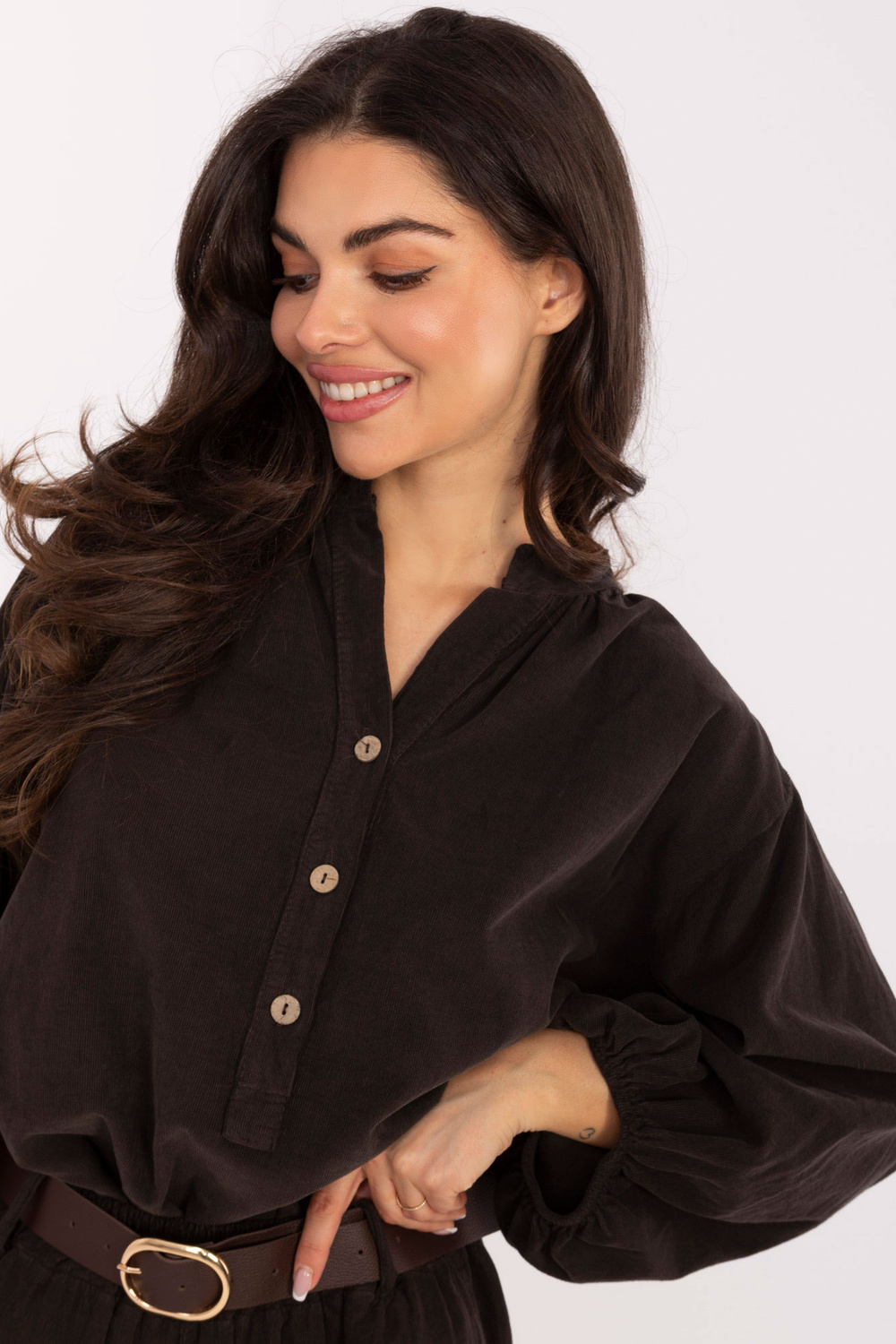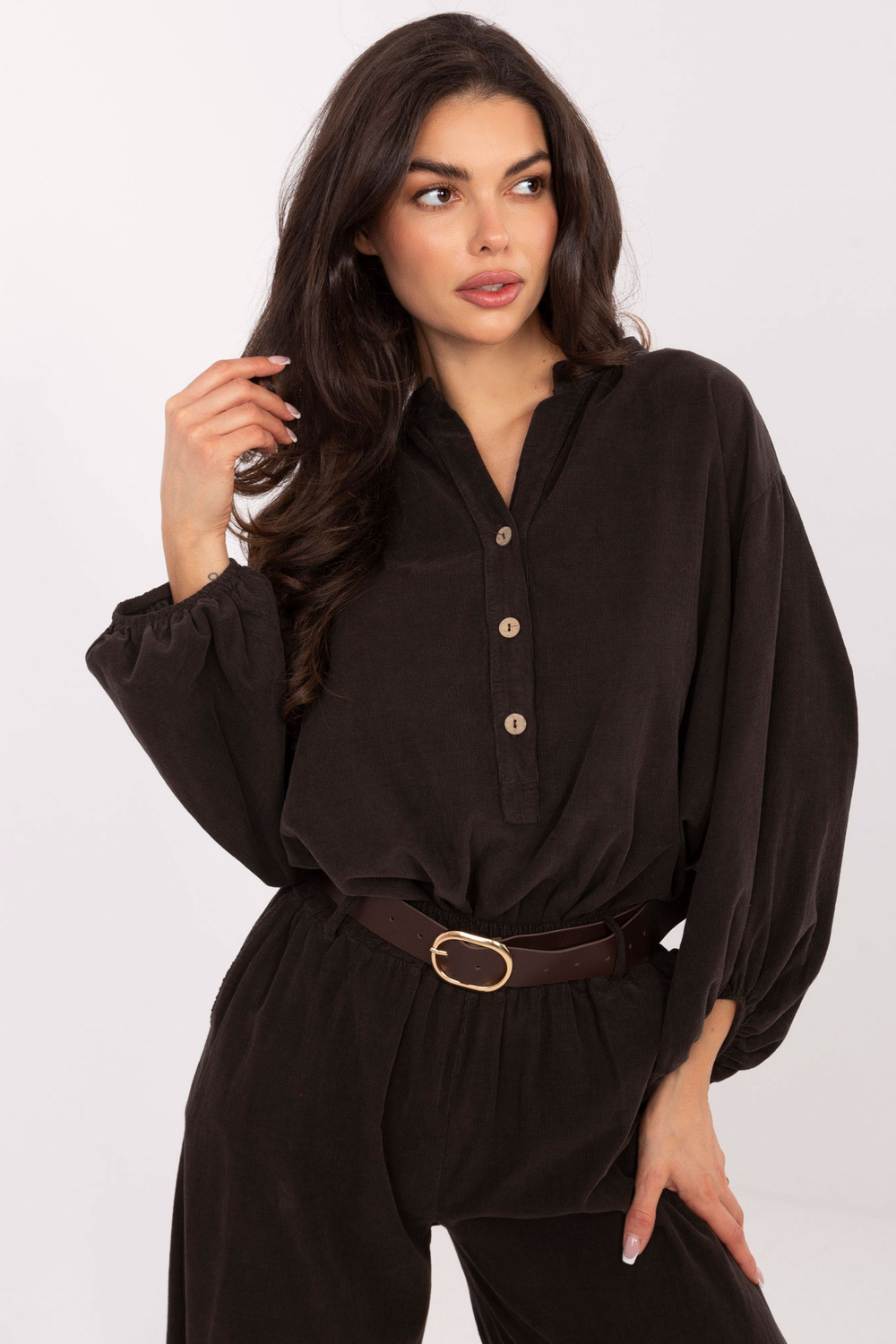 Rozměry halenky univerzální velikosti měřené vleže: šířka pod pažemi - 66 cm, celková délka - 66 cm (vpředu), celková délka - 77 cm (vzadu), šířka dole - 76 cm, délka rukávu - 51 cm (od švu).