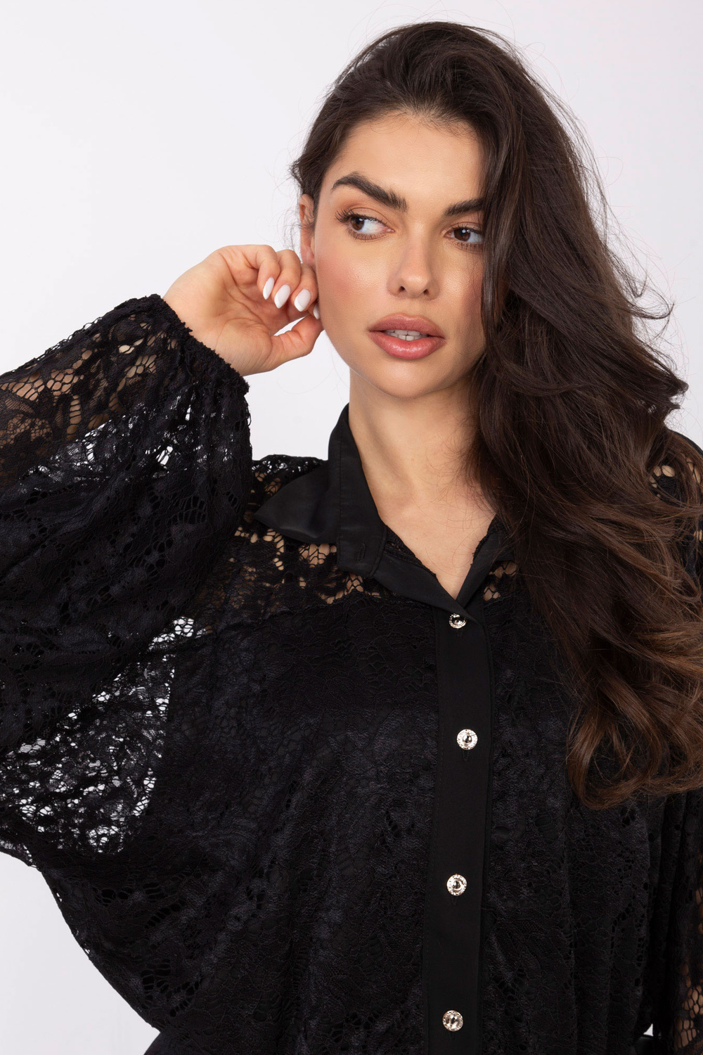 Modelka nosí oblečení v jedné velikosti. Rozměry modelky: výška 173 cm, hrudník 85 cm, pas 62 cm, boky 95 cm.