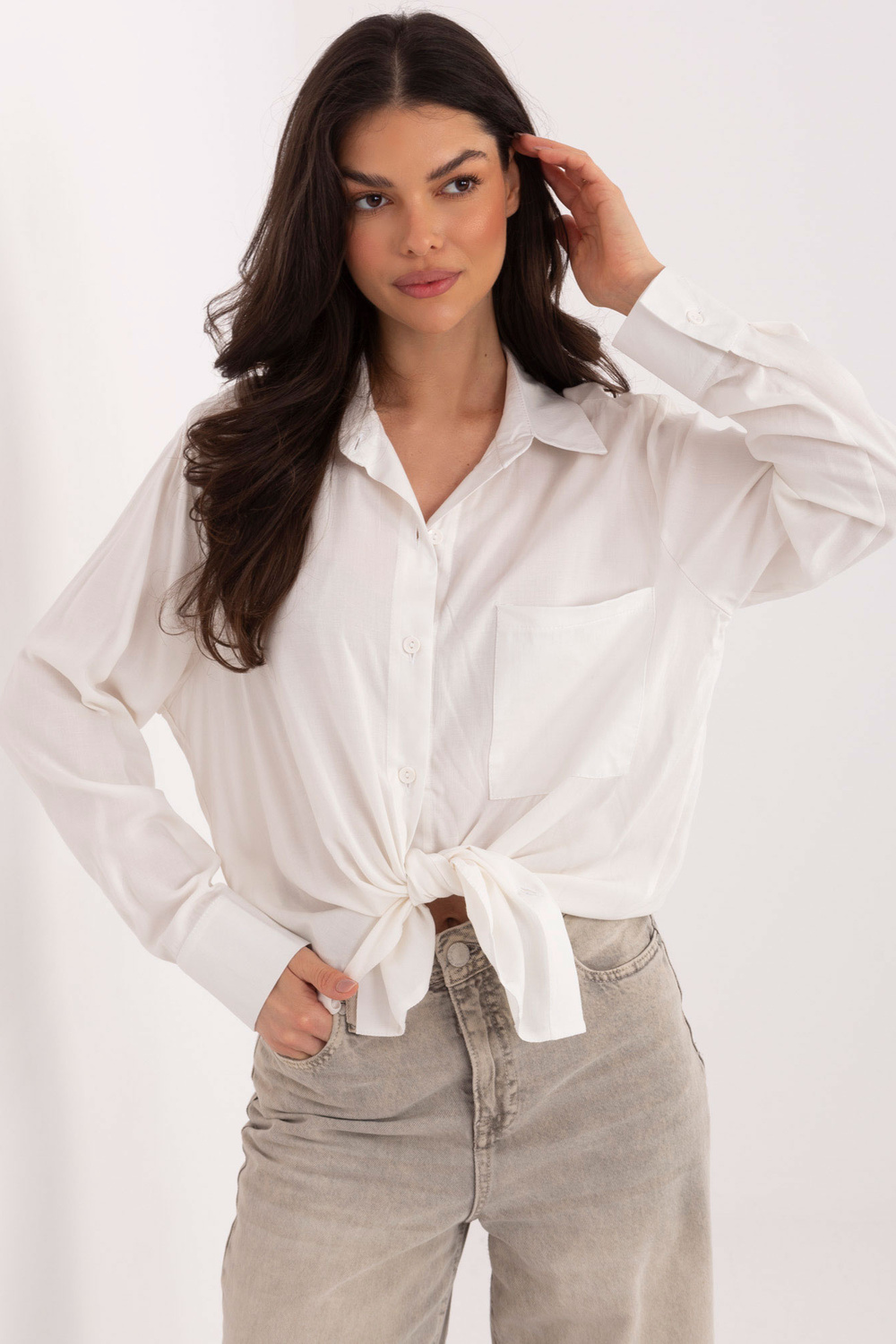 Rozměry košile ve velikosti S/M, měřeno na plocho: šířka pod pažemi – 59 cm, celková délka – 70 cm, délka rukávu – 60 cm (od švu), obvod boků – 63 cm.