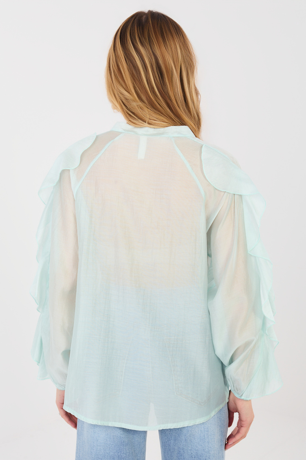 Model nosí oděv v univerzální velikosti. Rozměry modelu: výška 173 cm, hrudník 85 cm, pas 62 cm, boky 95 cm.