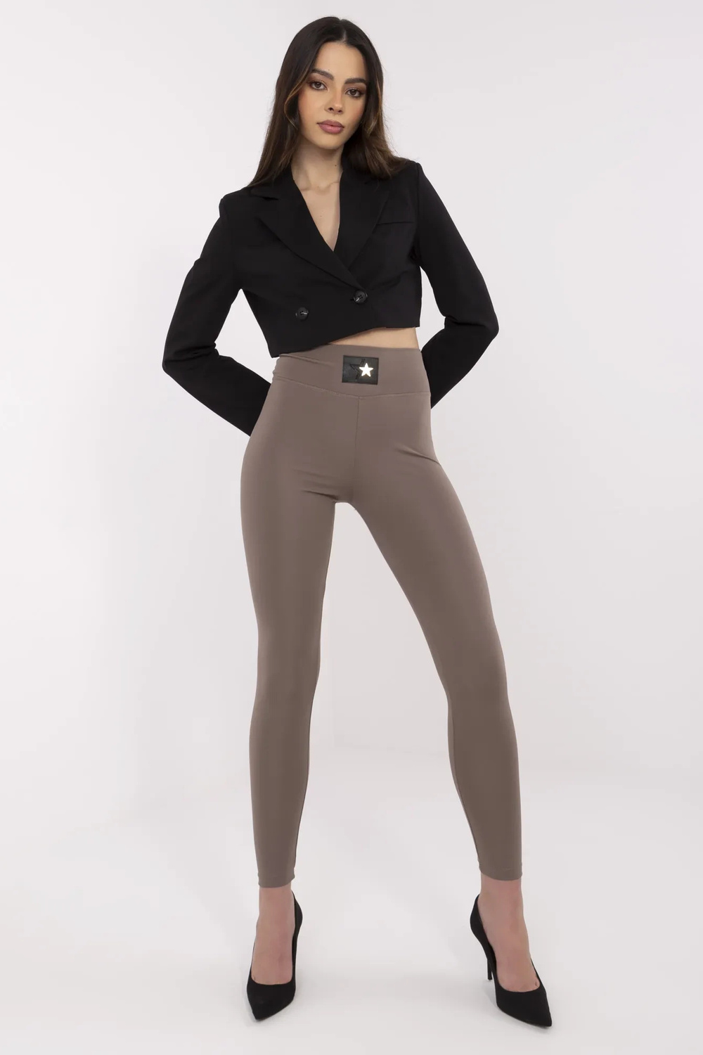 Modelka má na sobě velikost S. Míry modelky: výška 175 cm, hrudník 90 cm, pas 66 cm, boky 94 cm.