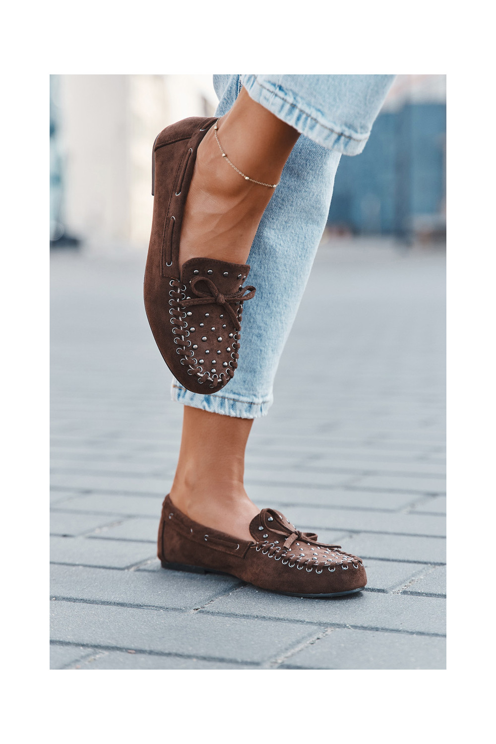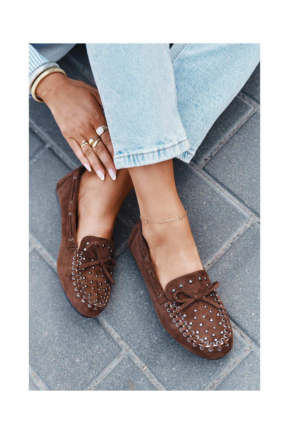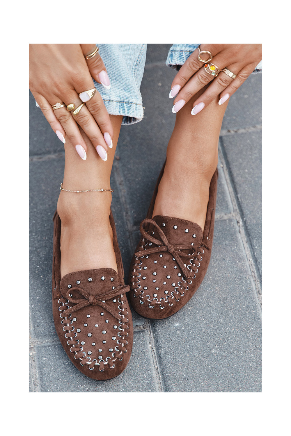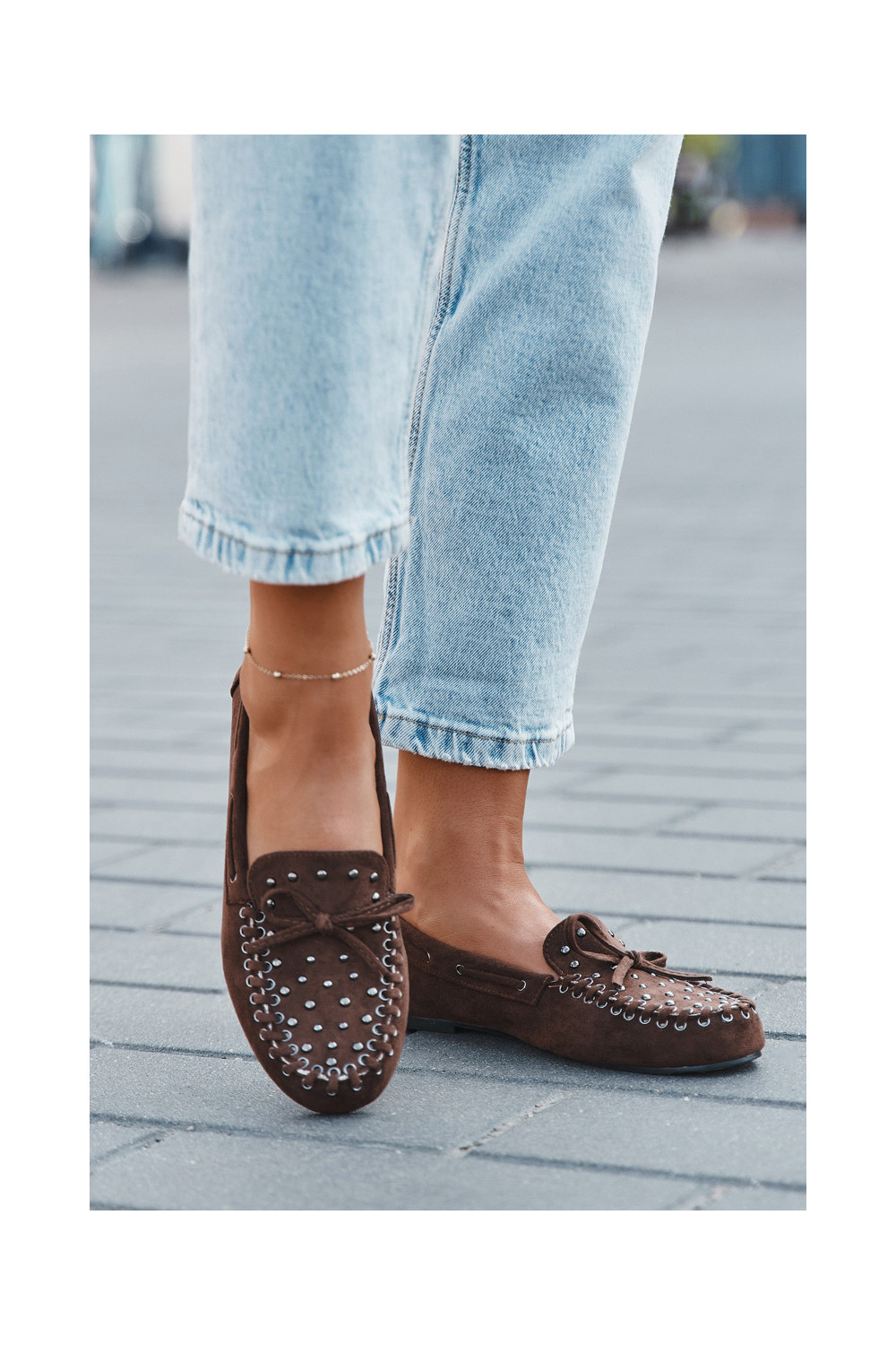 Zdobené Dámské mokasíny Z z eko semišeu hnědá Prissine