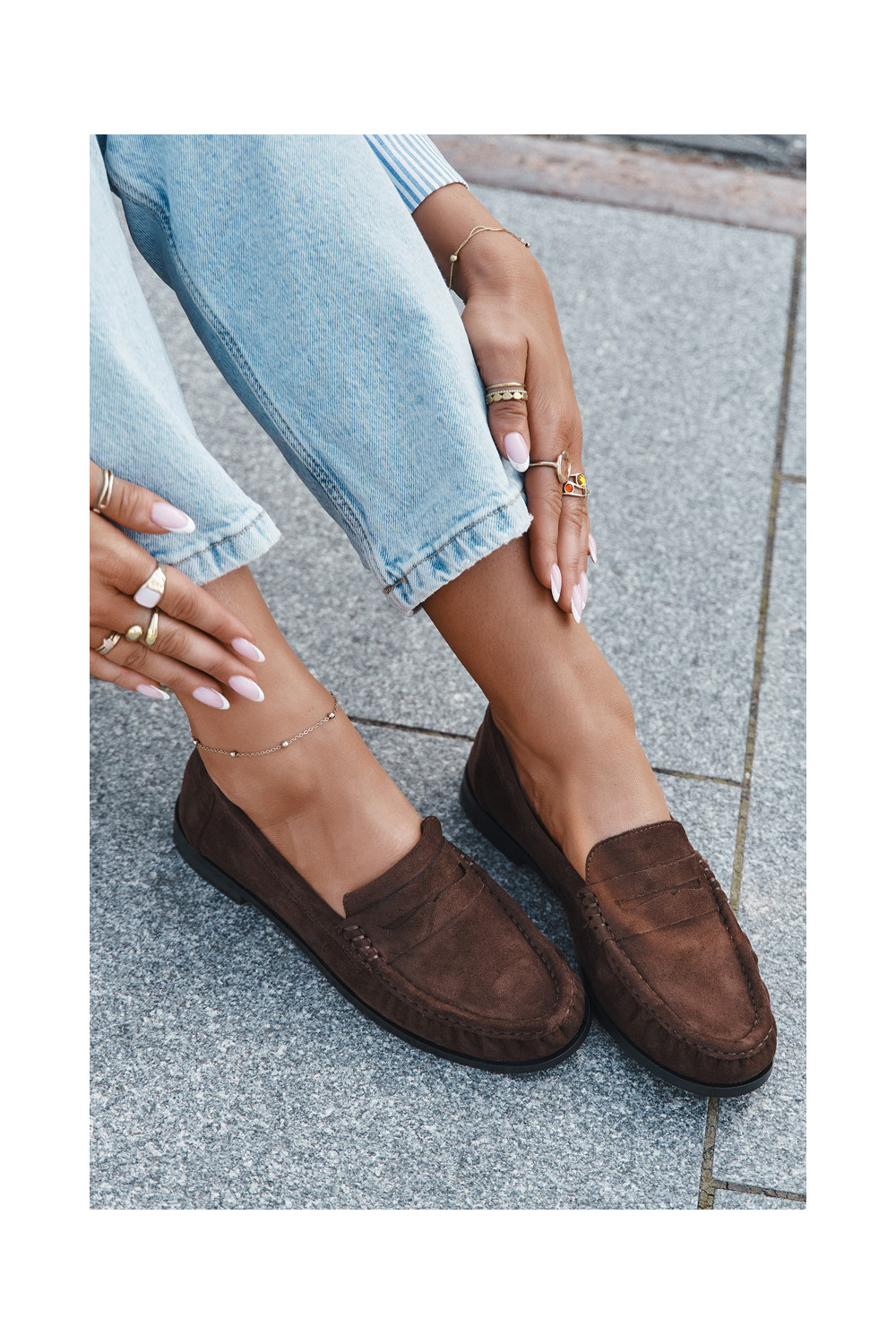 mokasíny s širokými podpatky Z z eko semišeu hnědá Rivianne