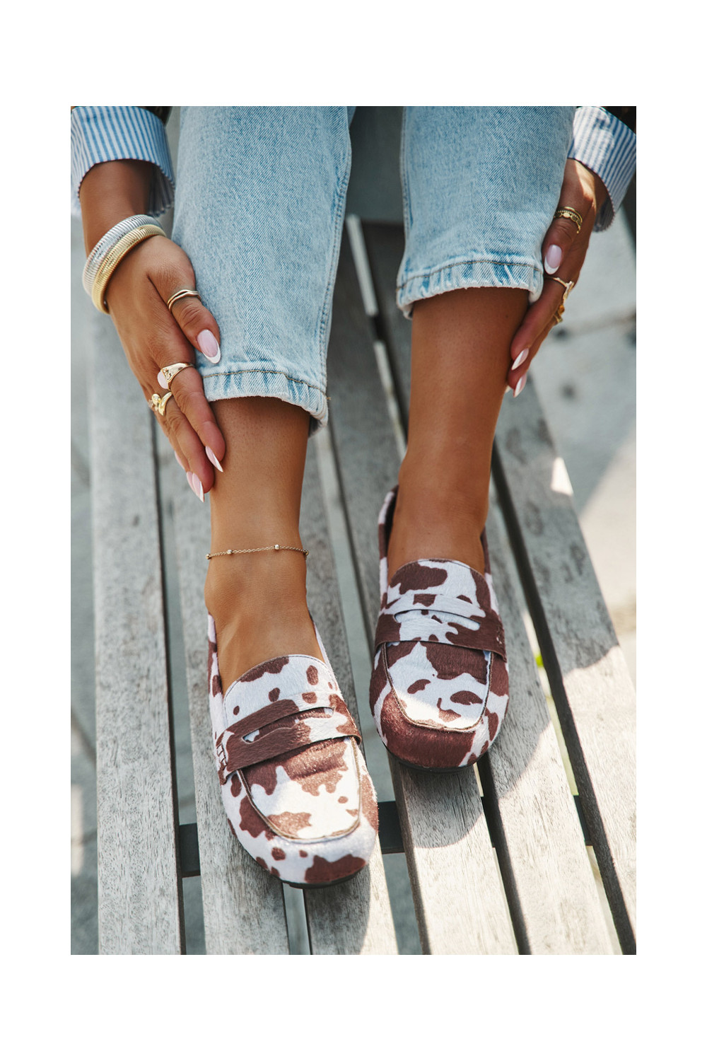 mokasíny Dámské mokasíny Ploché botyŁaty hnědá-bílé Soreline