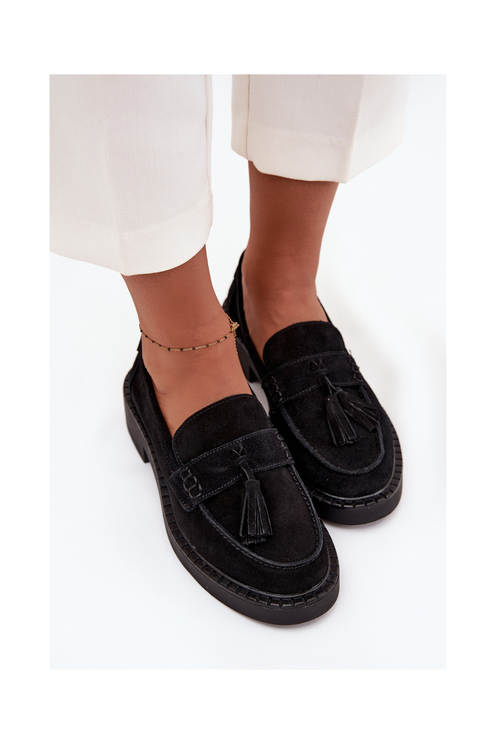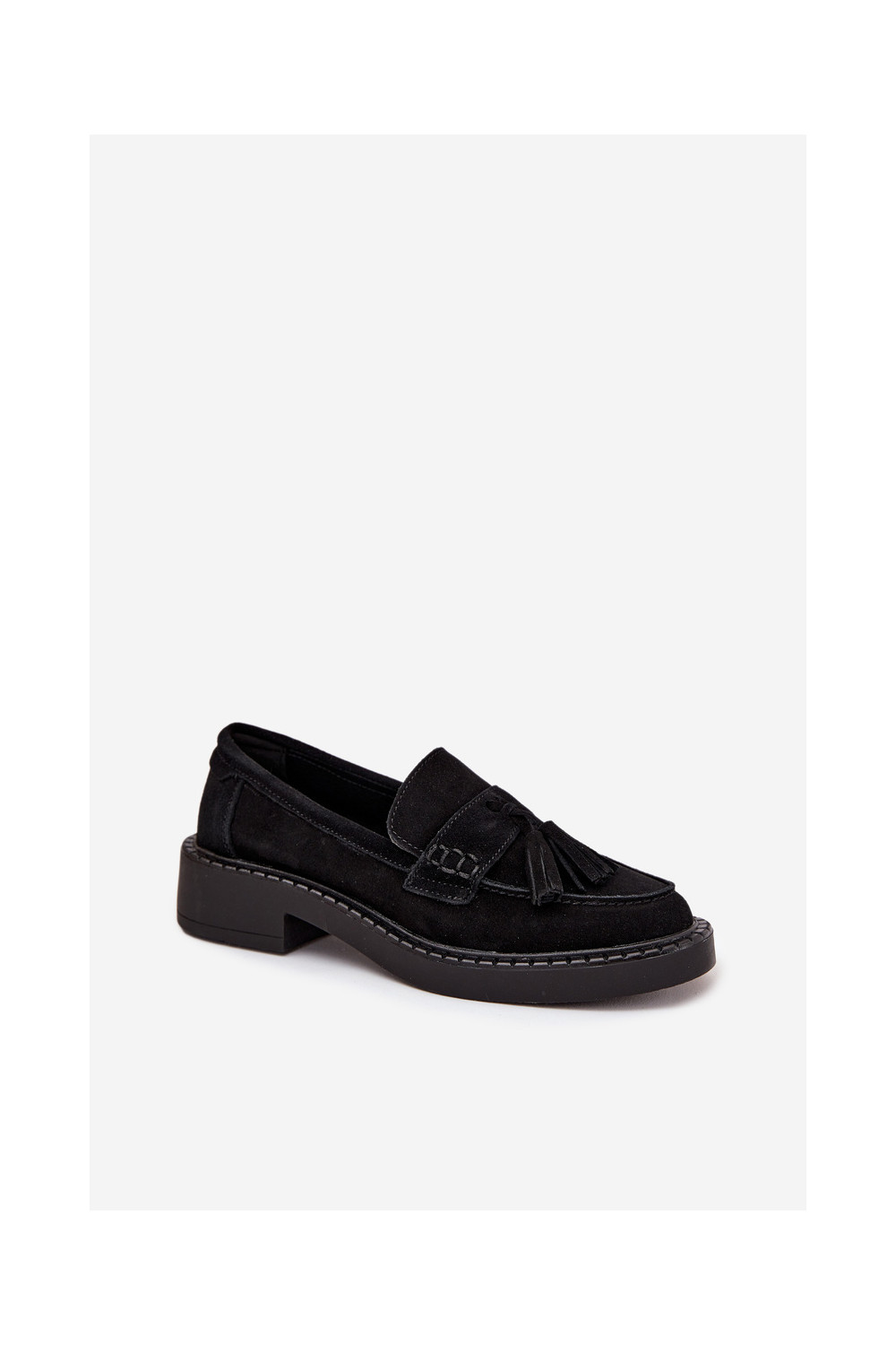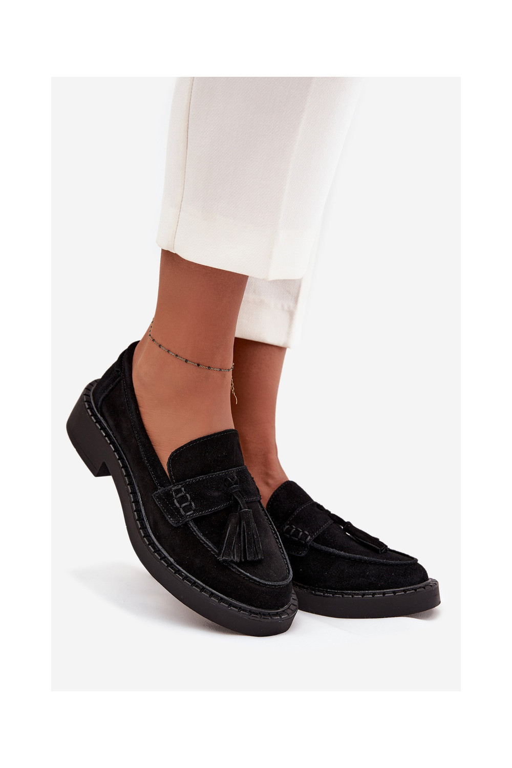 Dámské mokasíny ze semiše se střapci D&A TW107 Černé