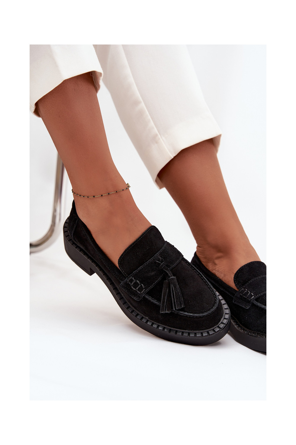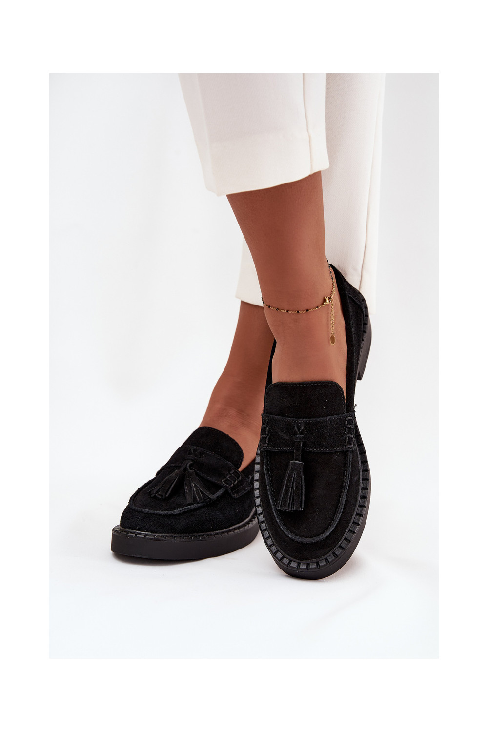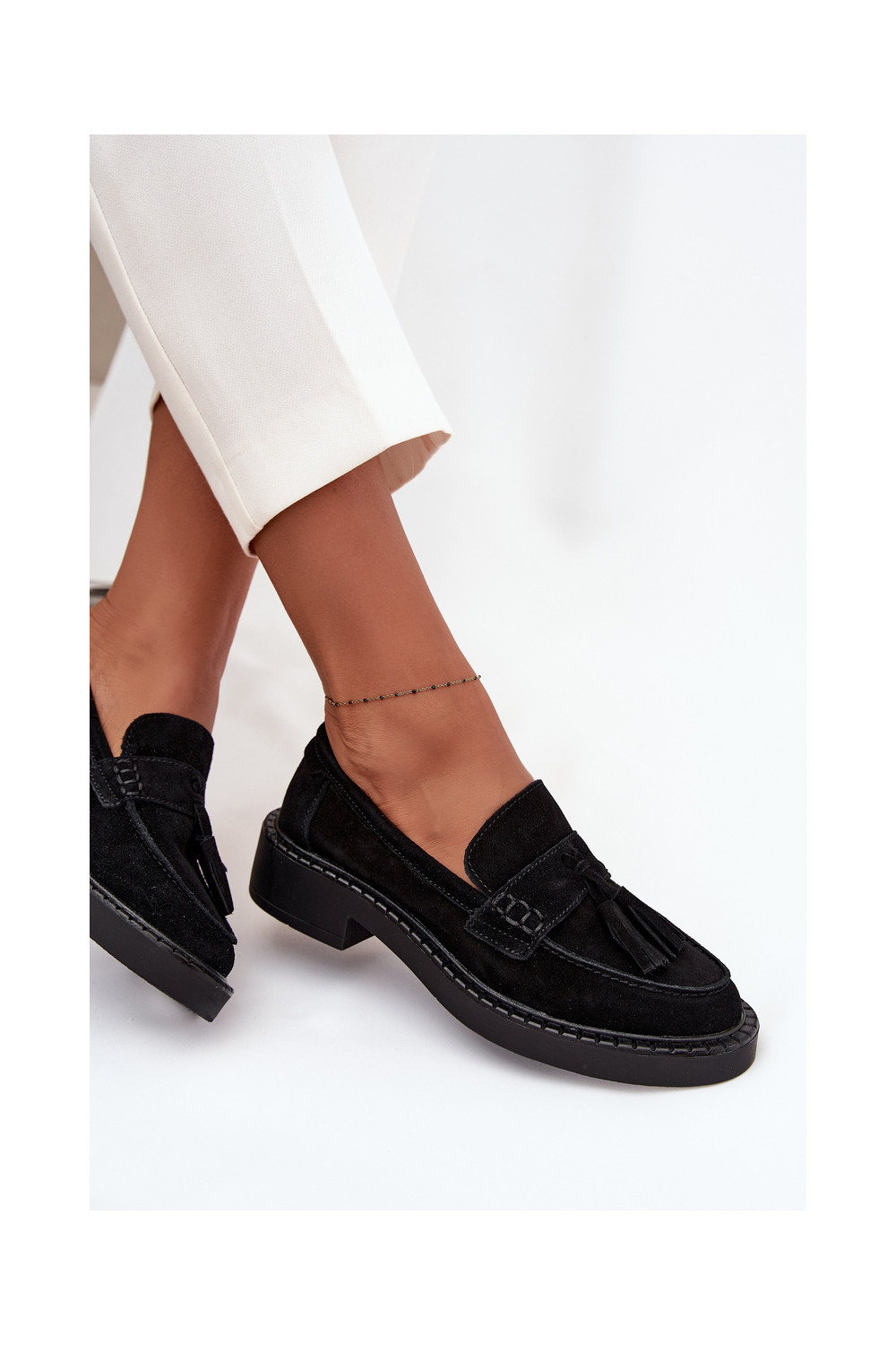 Dámské mokasíny ze semiše se střapci D&A TW107 Černé