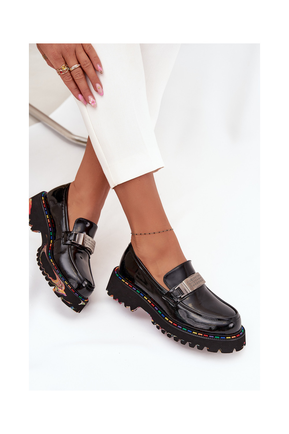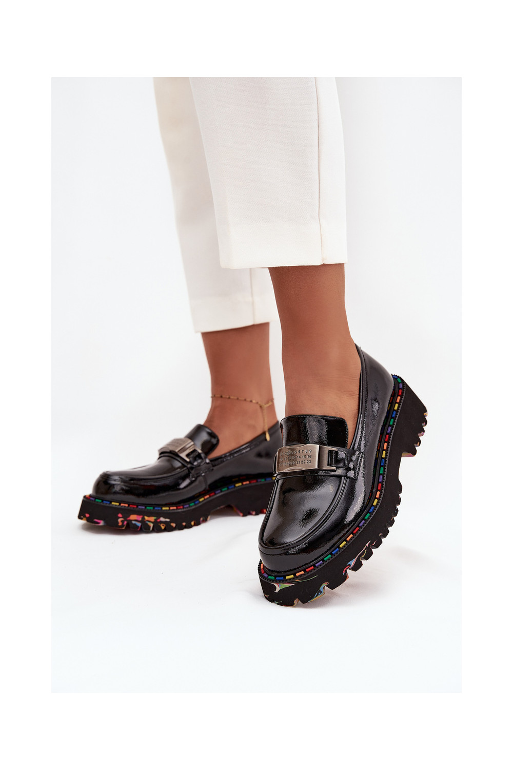 boty Dámské mokasíny Z s efektem lakuj Skóry Artiker 57C0070 Černé