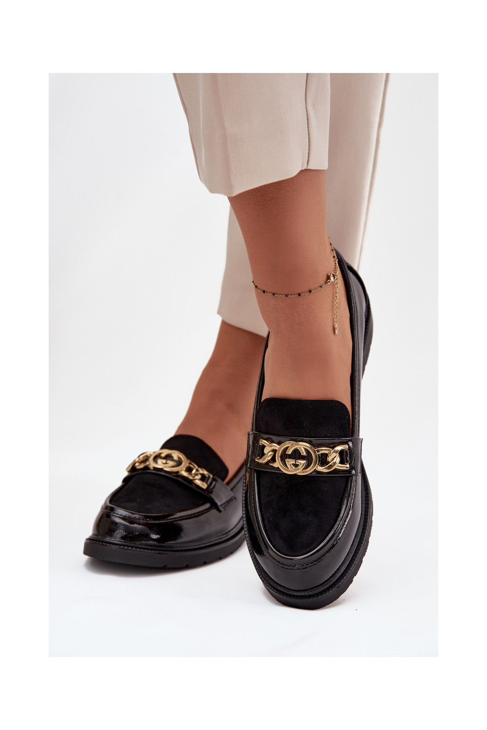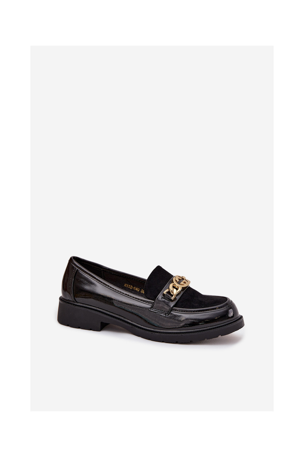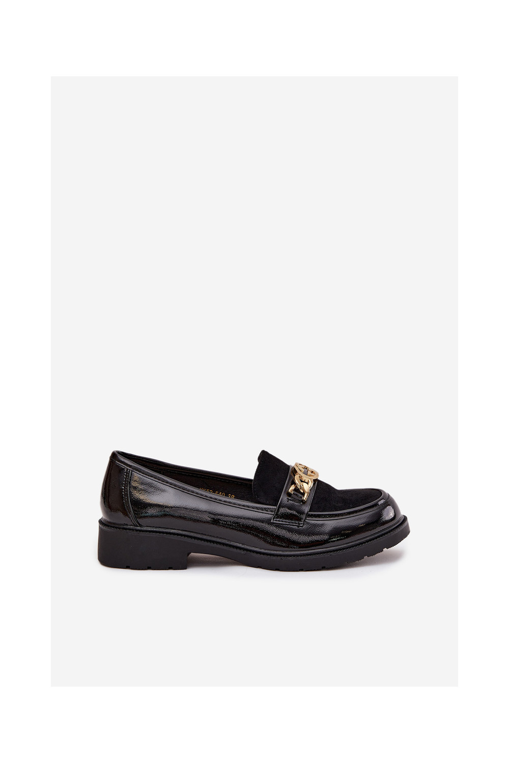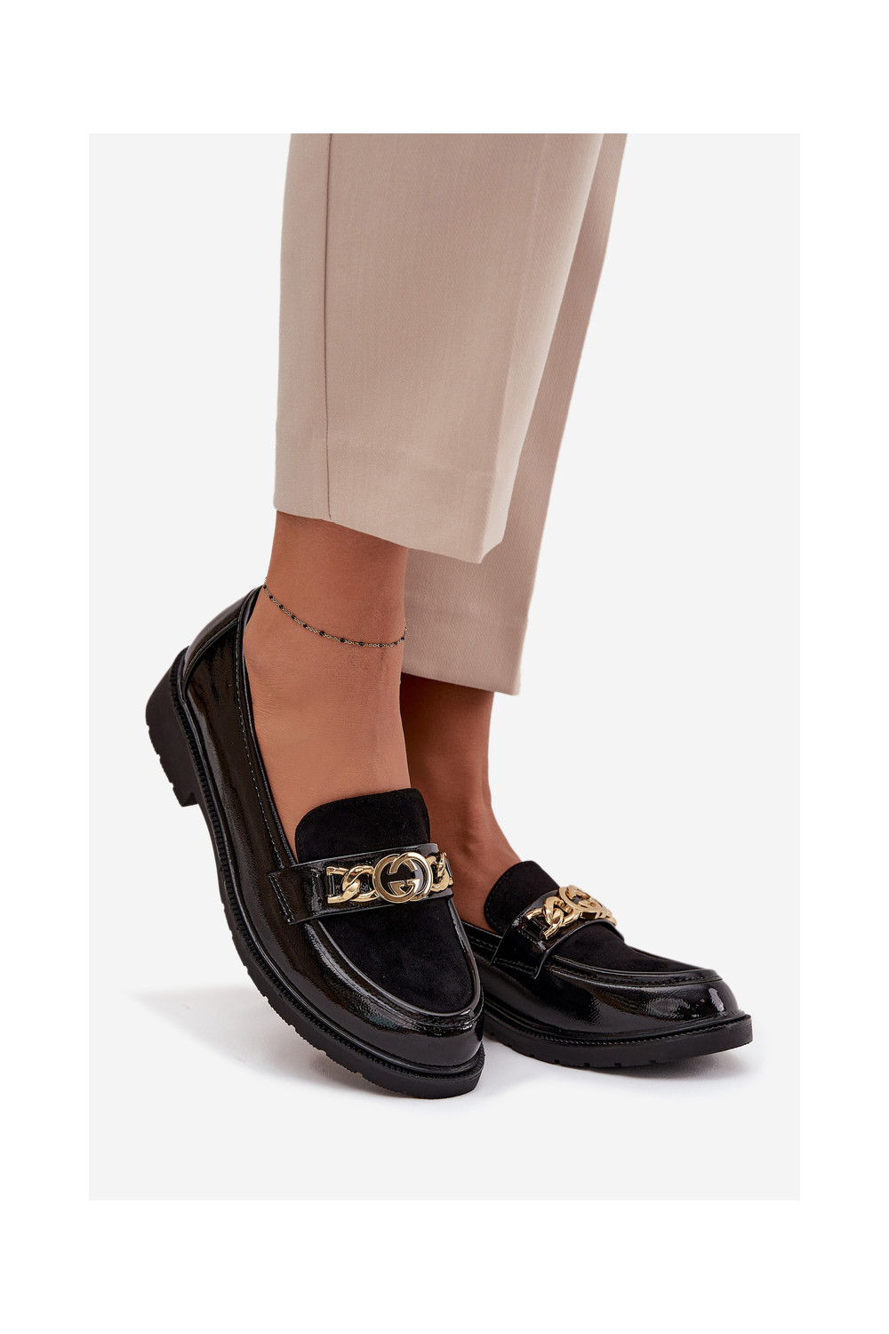 Lakované mokasíny se zlatými detaily S.Barski HY52-540 Černé