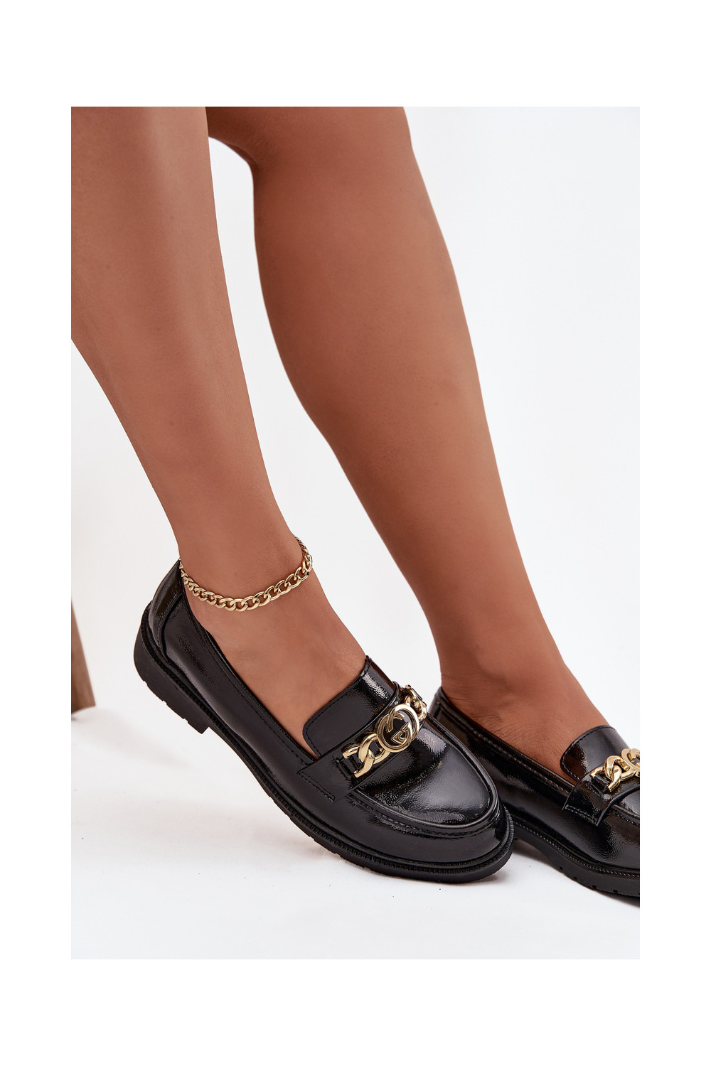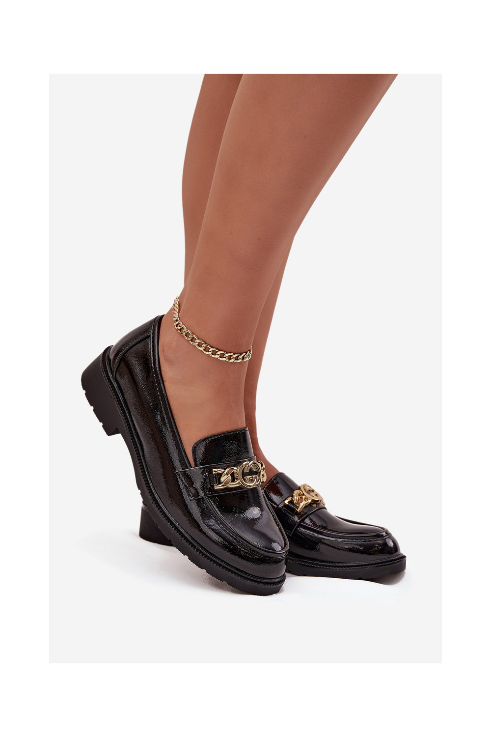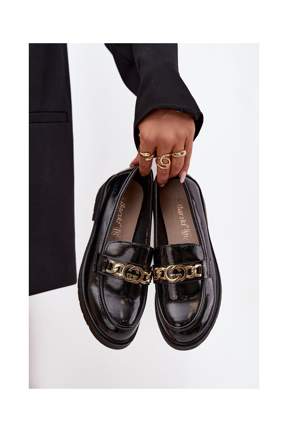 Lakované mokasíny se zlatými detaily S.Barski HY52-539 Černé