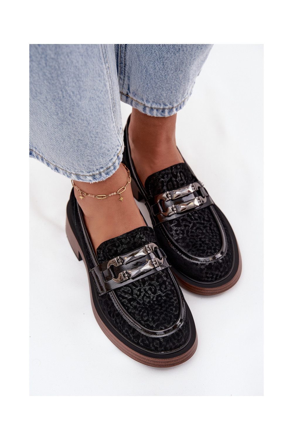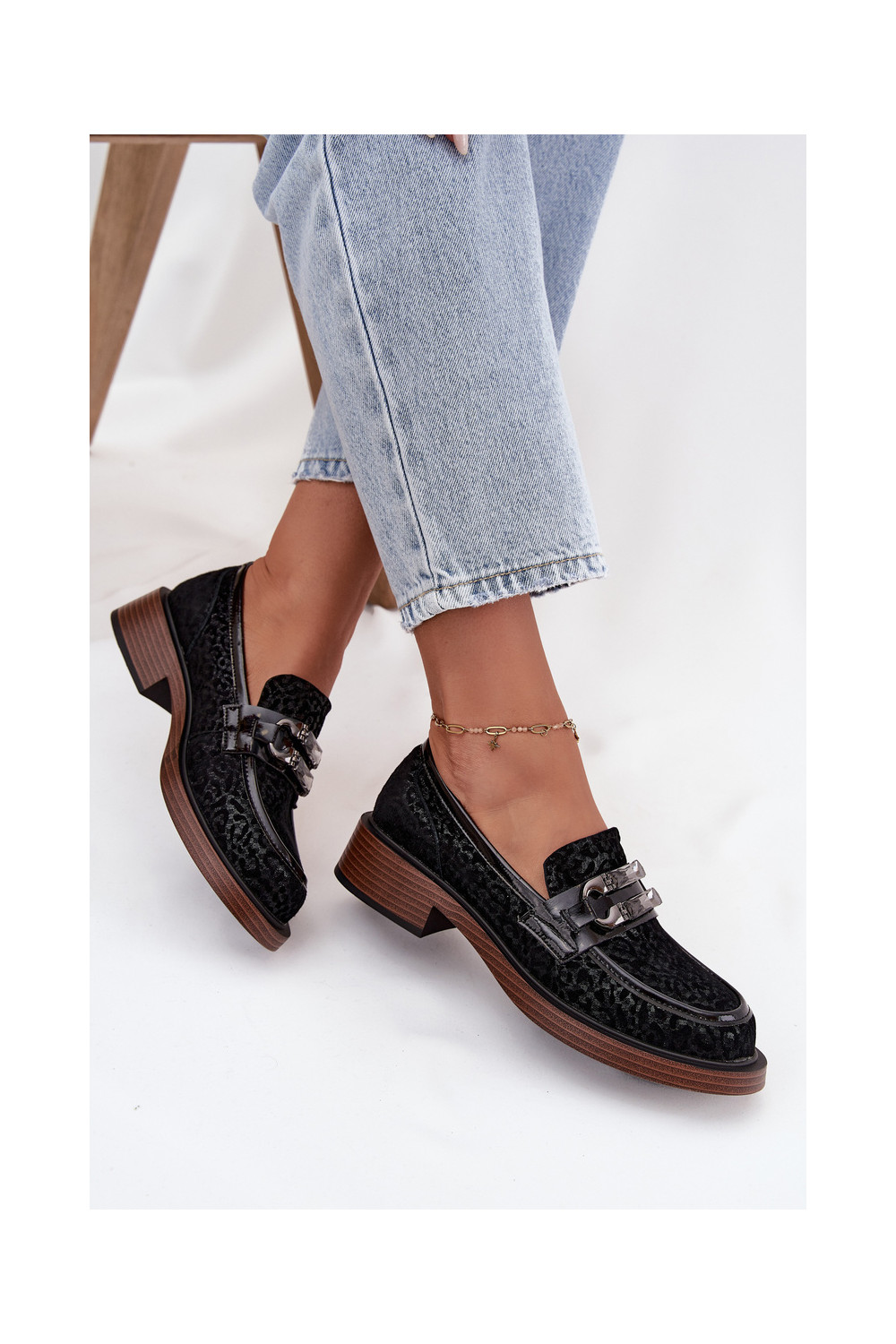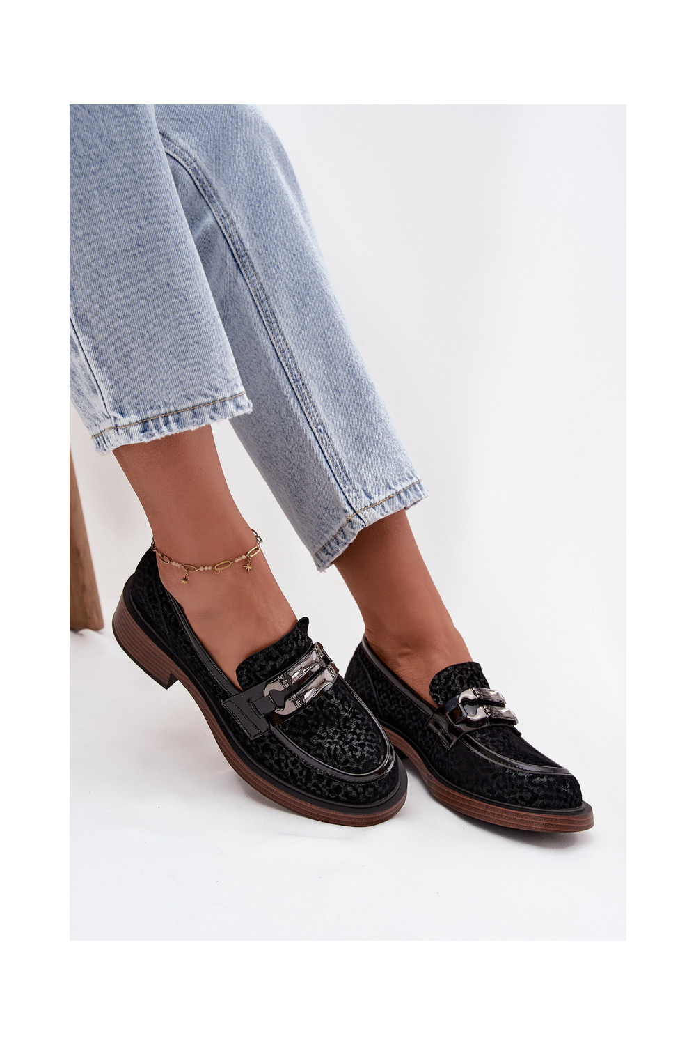 Semišové mokasíny s ornamenty D&A MR52-176 Černé