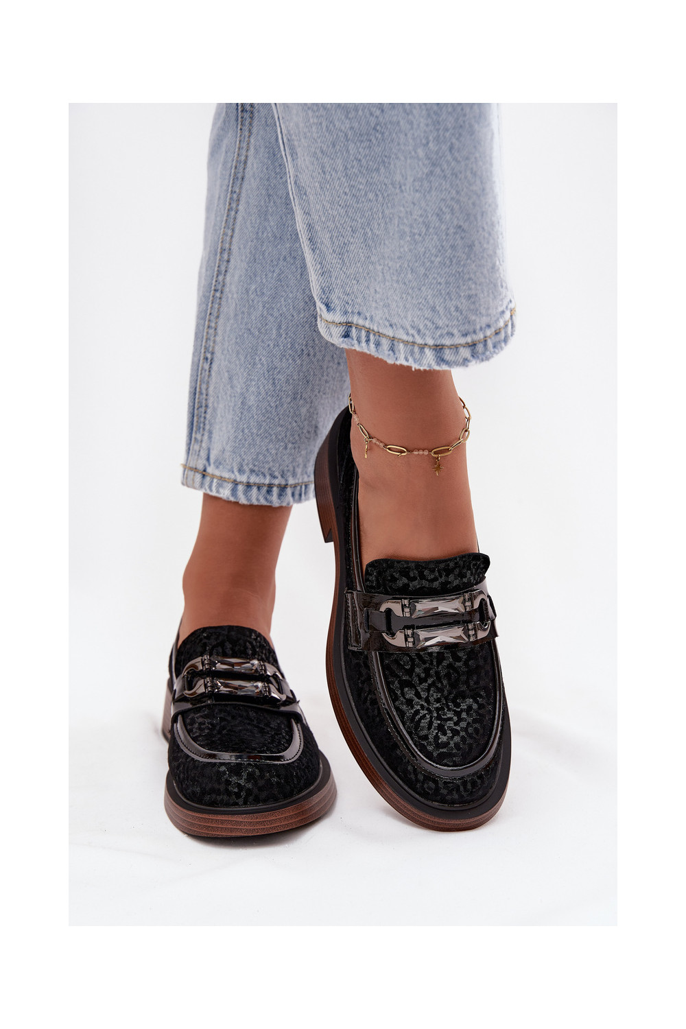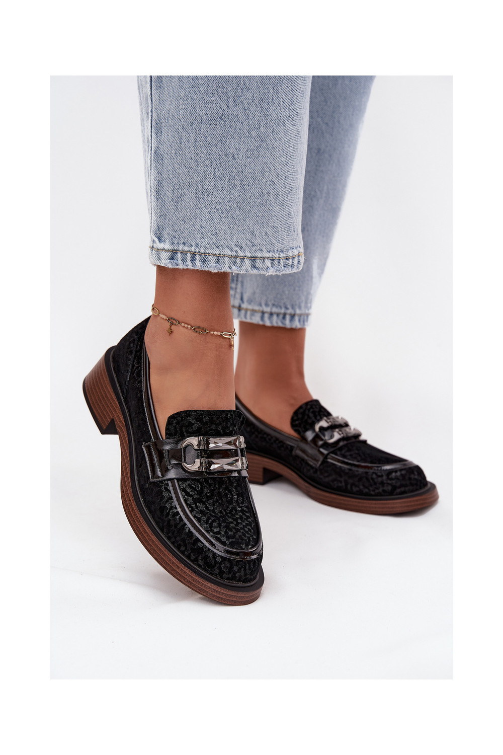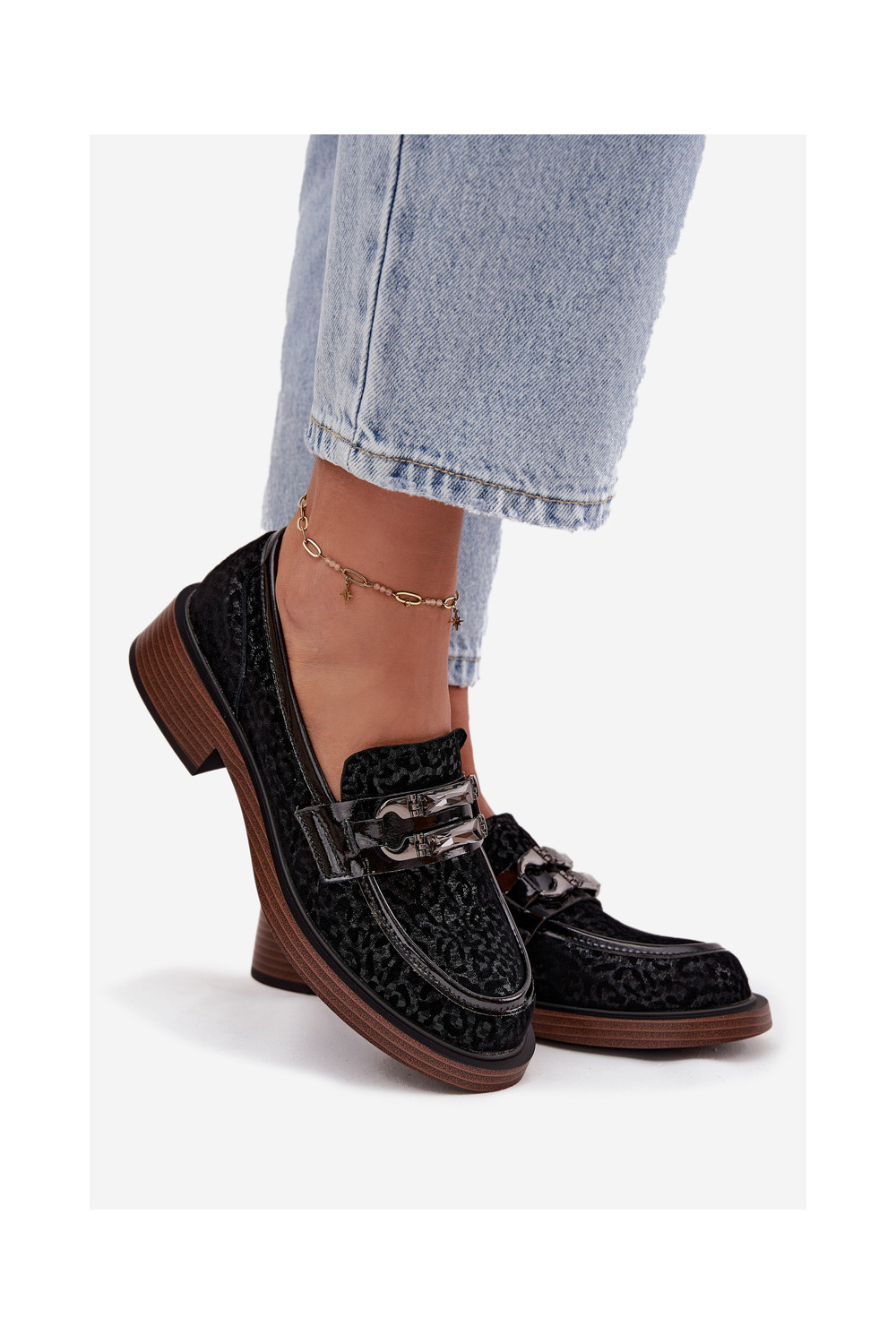 Semišové mokasíny s ornamenty D&A MR52-176 Černé