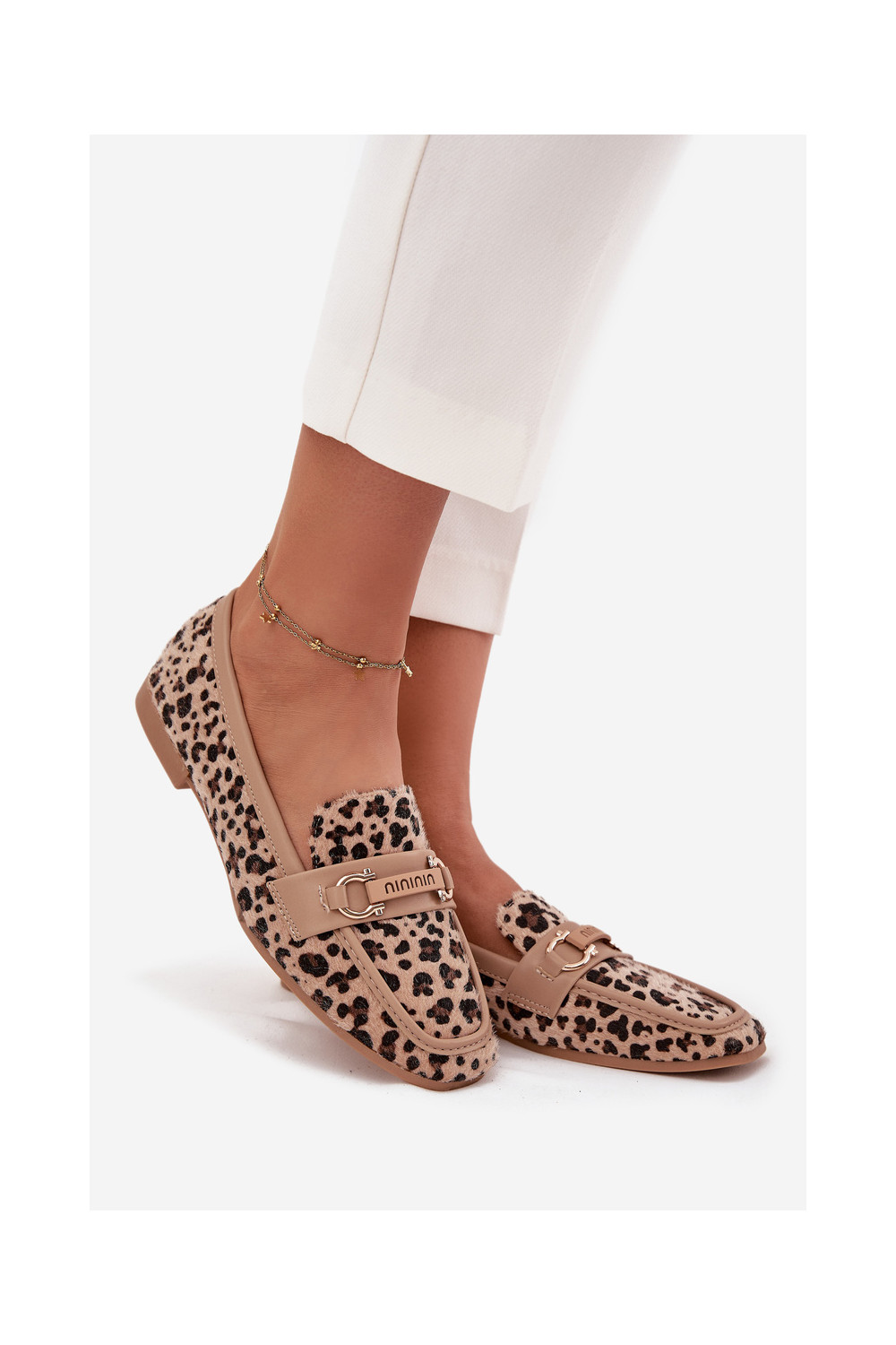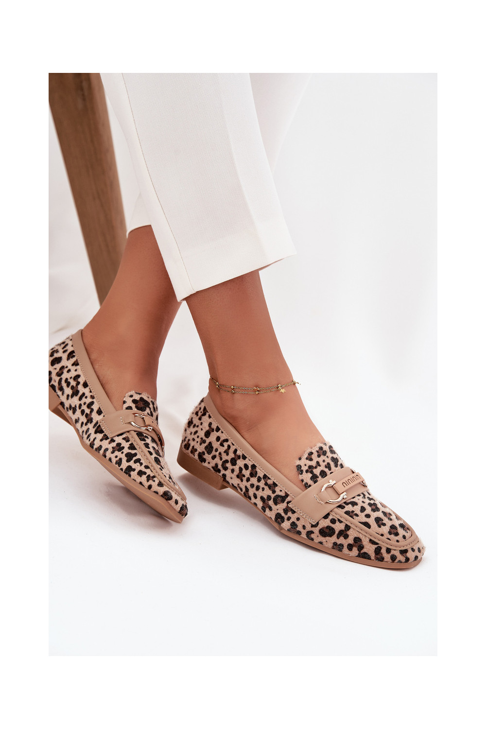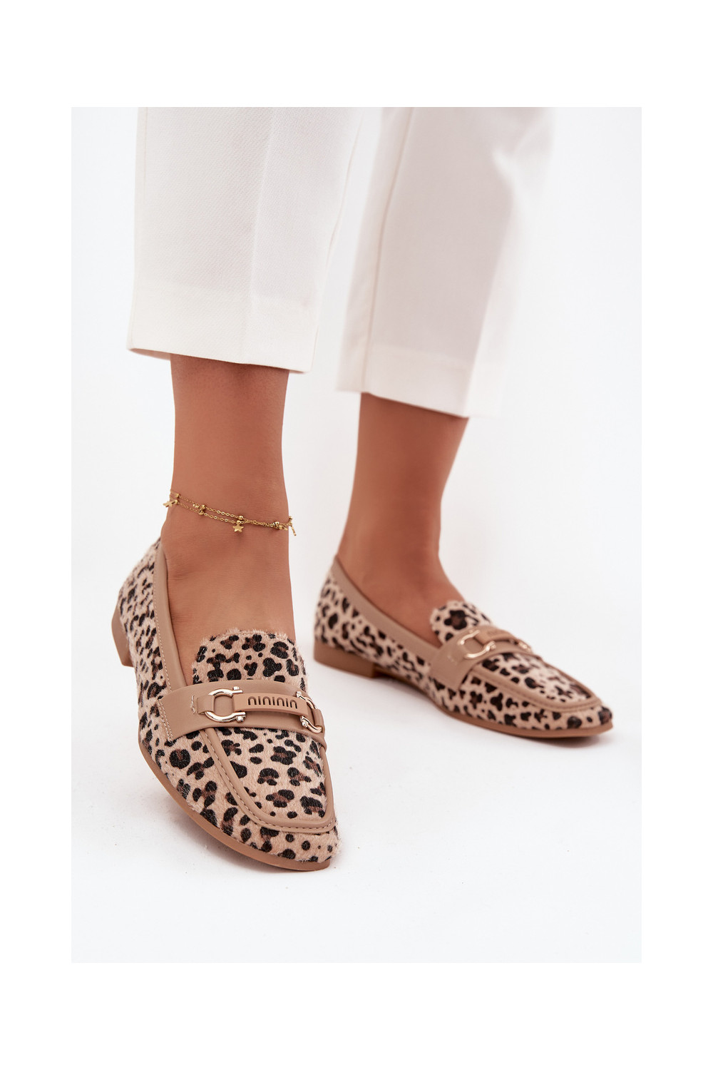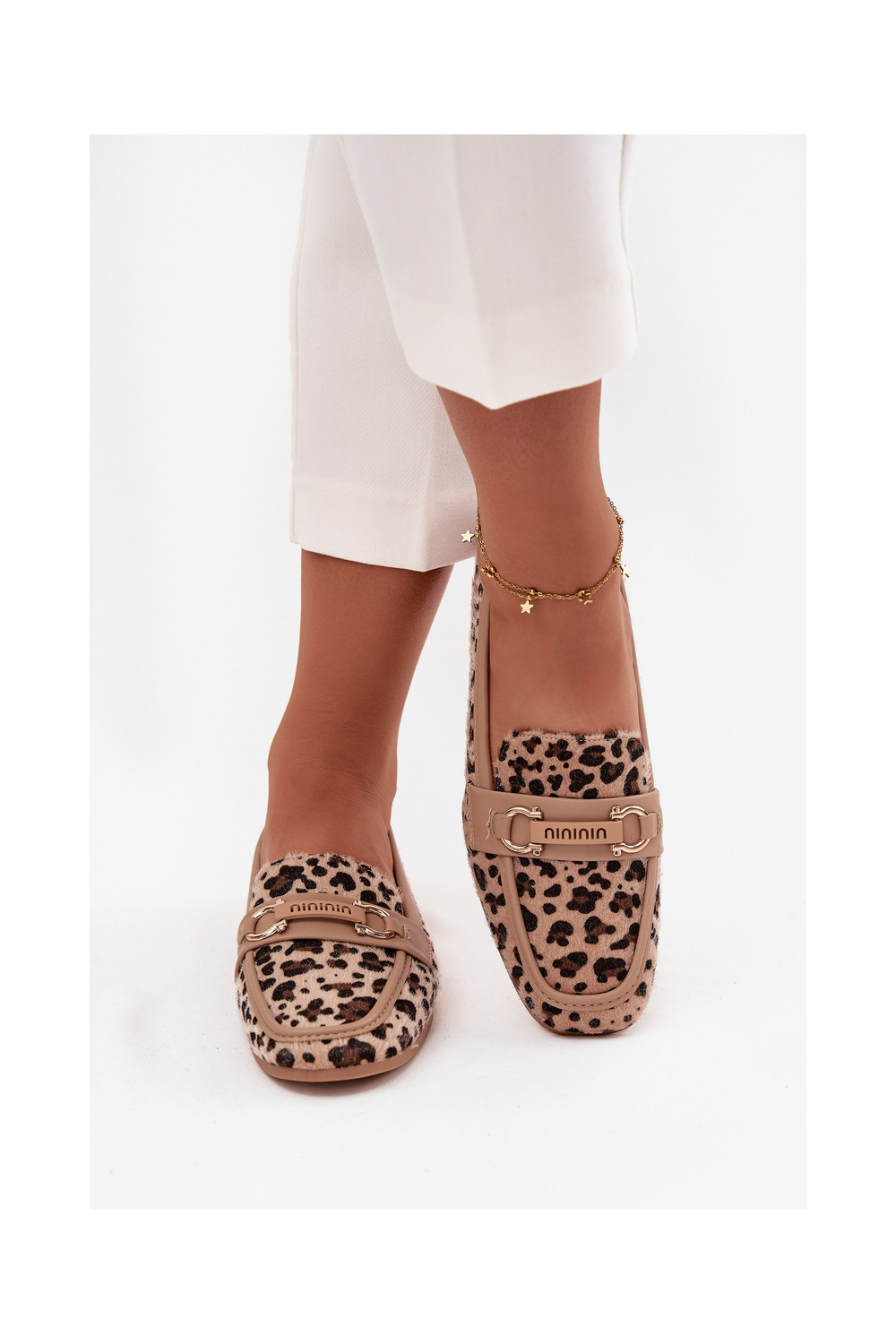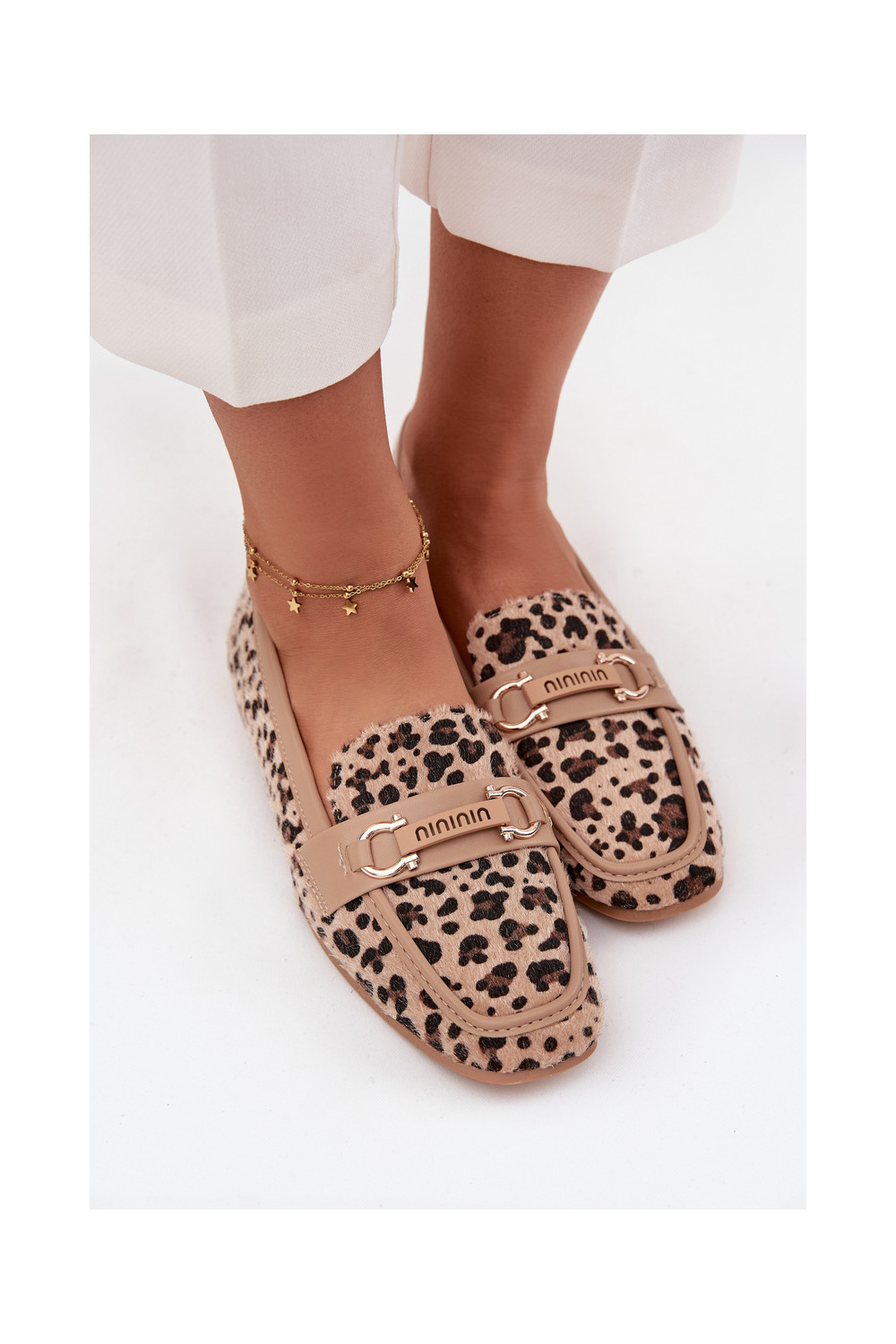 mokasíny mokasíny se vzory leopardí kožešiny béžové Evelora