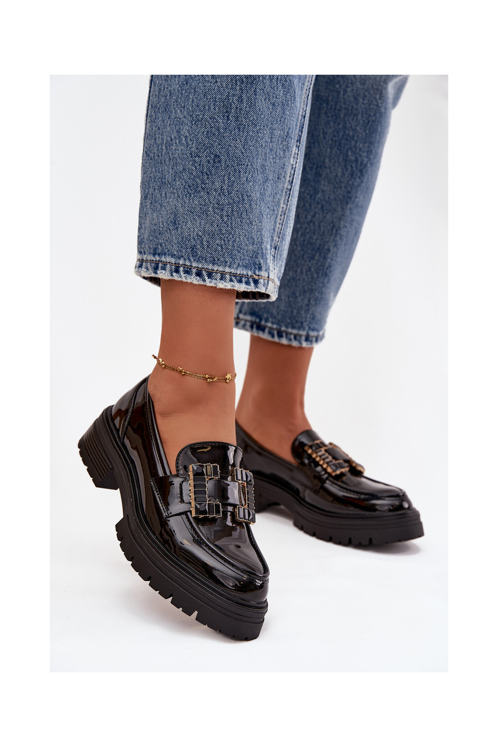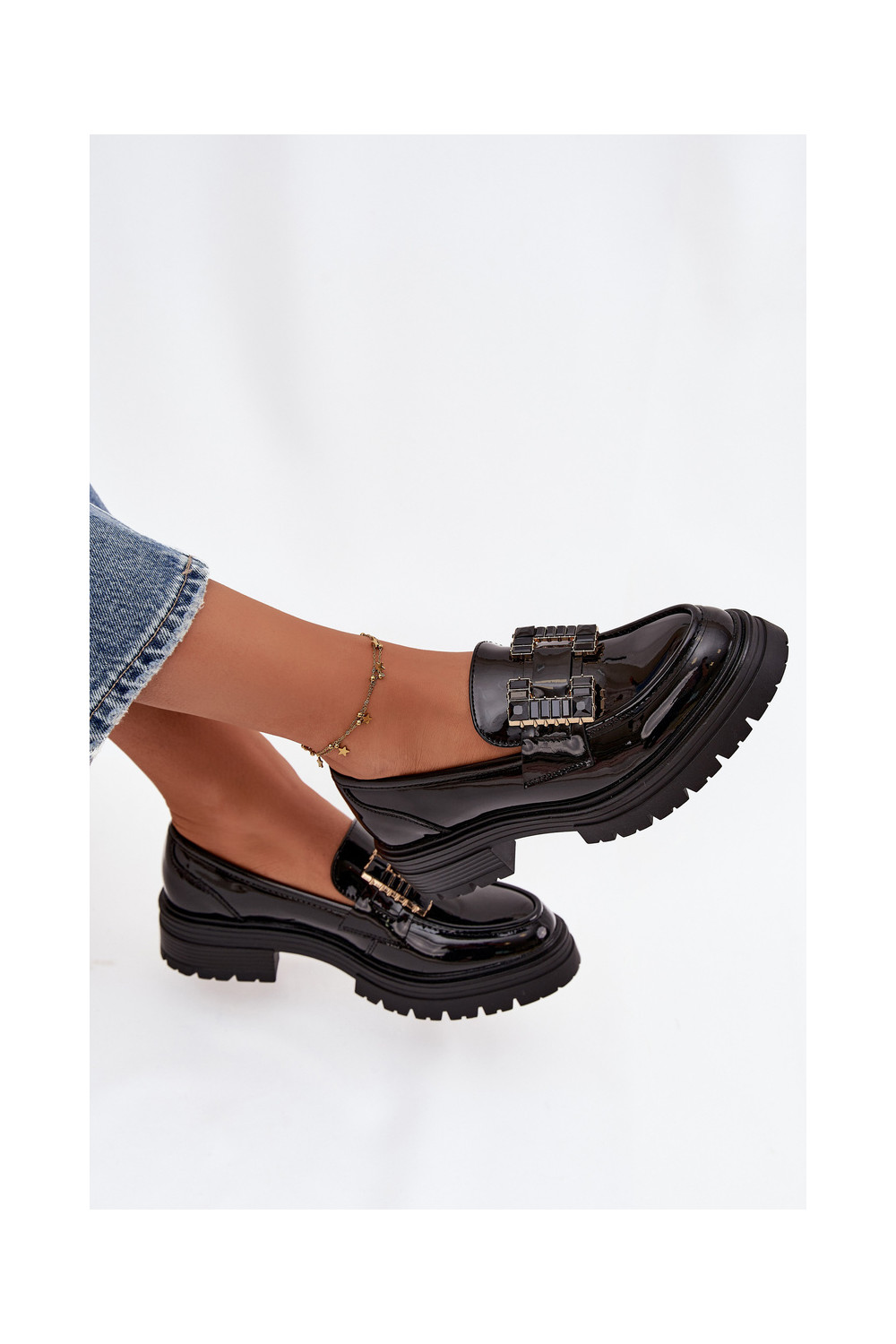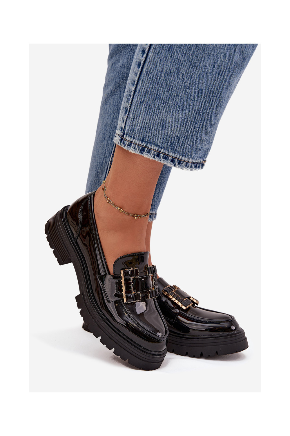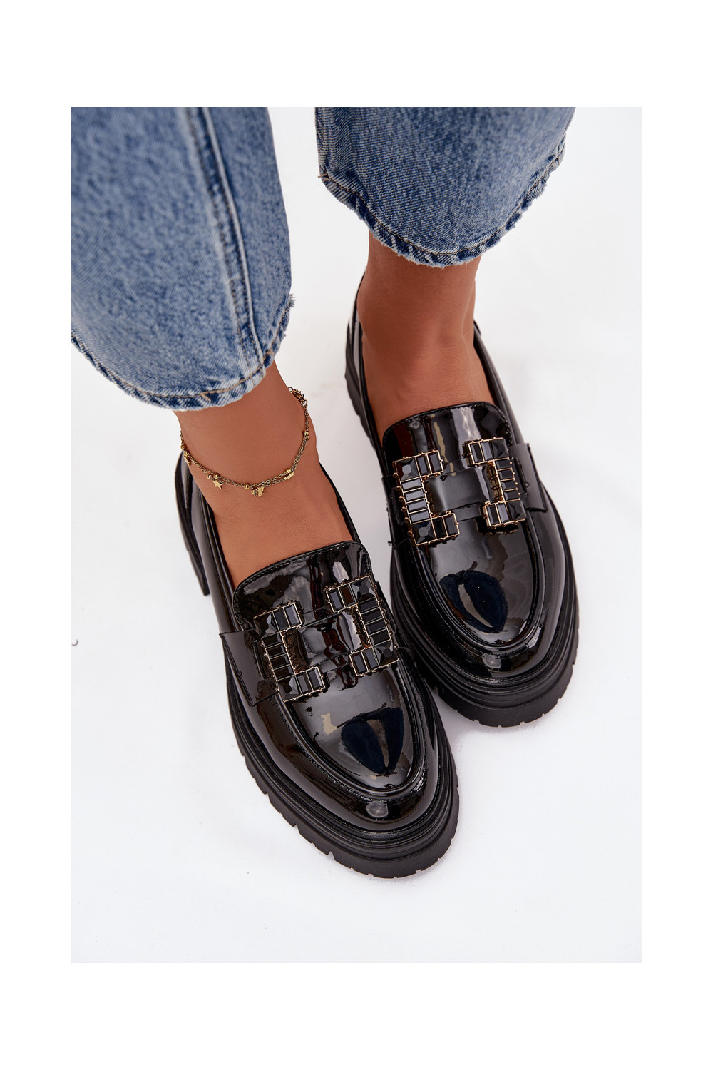 Dámské mokasíny s efektem laku s ornamenty Černé Ysandra