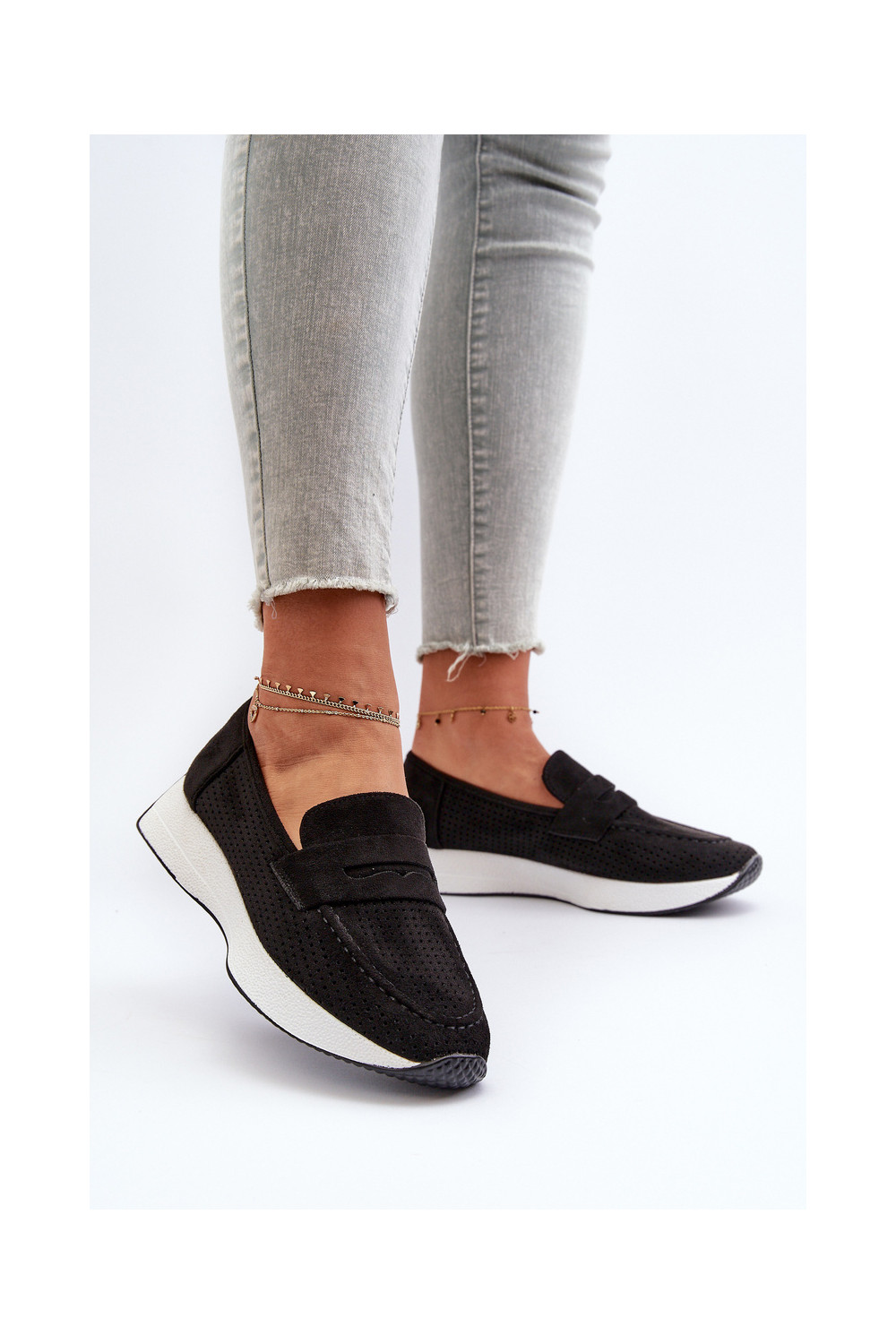 Dámské mokasíny s pozlacenou podrážkou z eko semišeowe Černé Inesqua