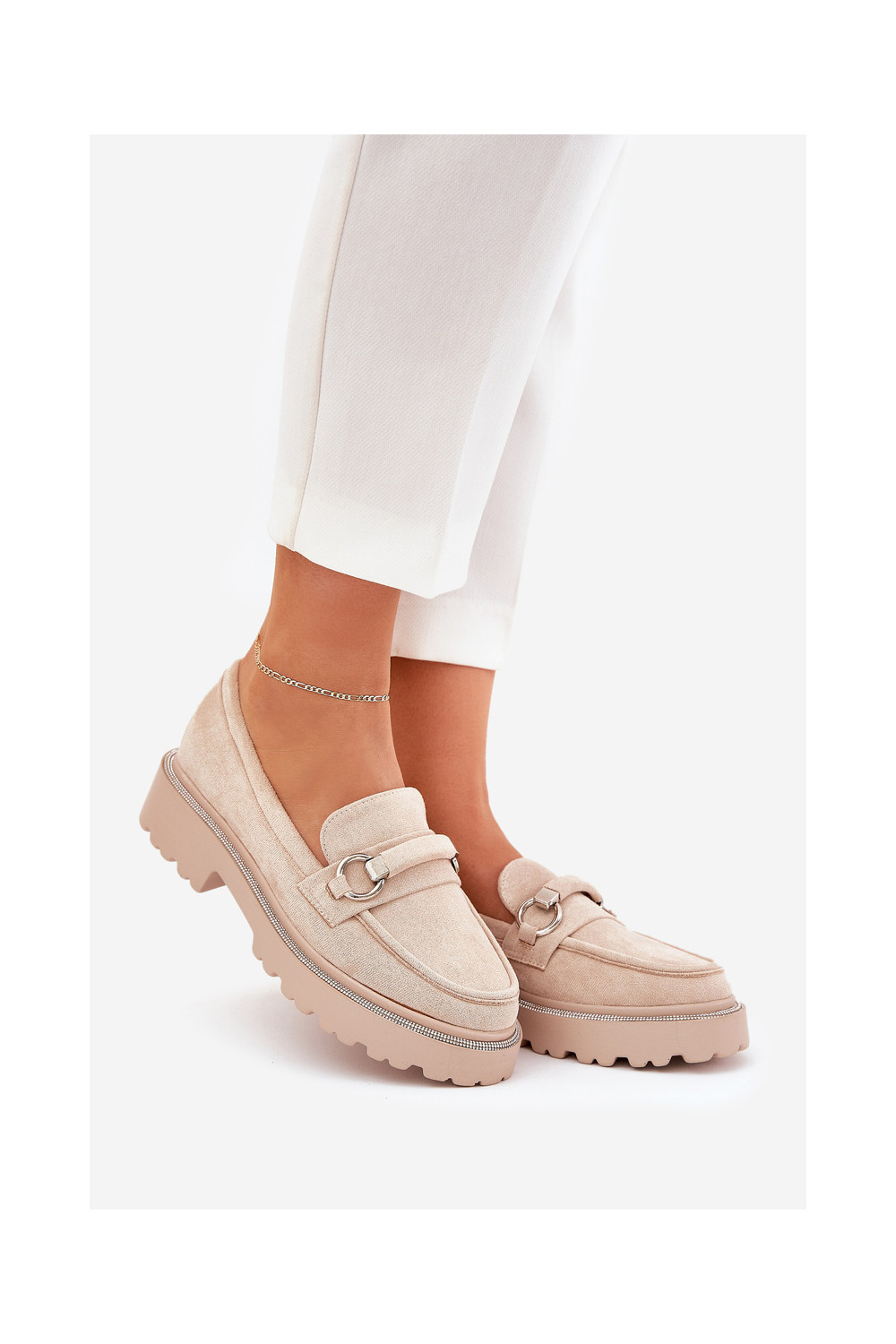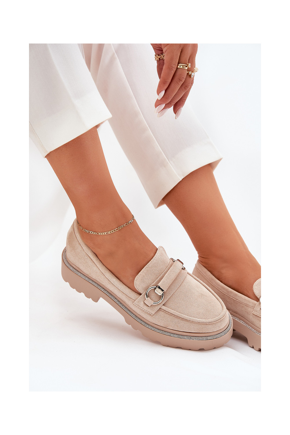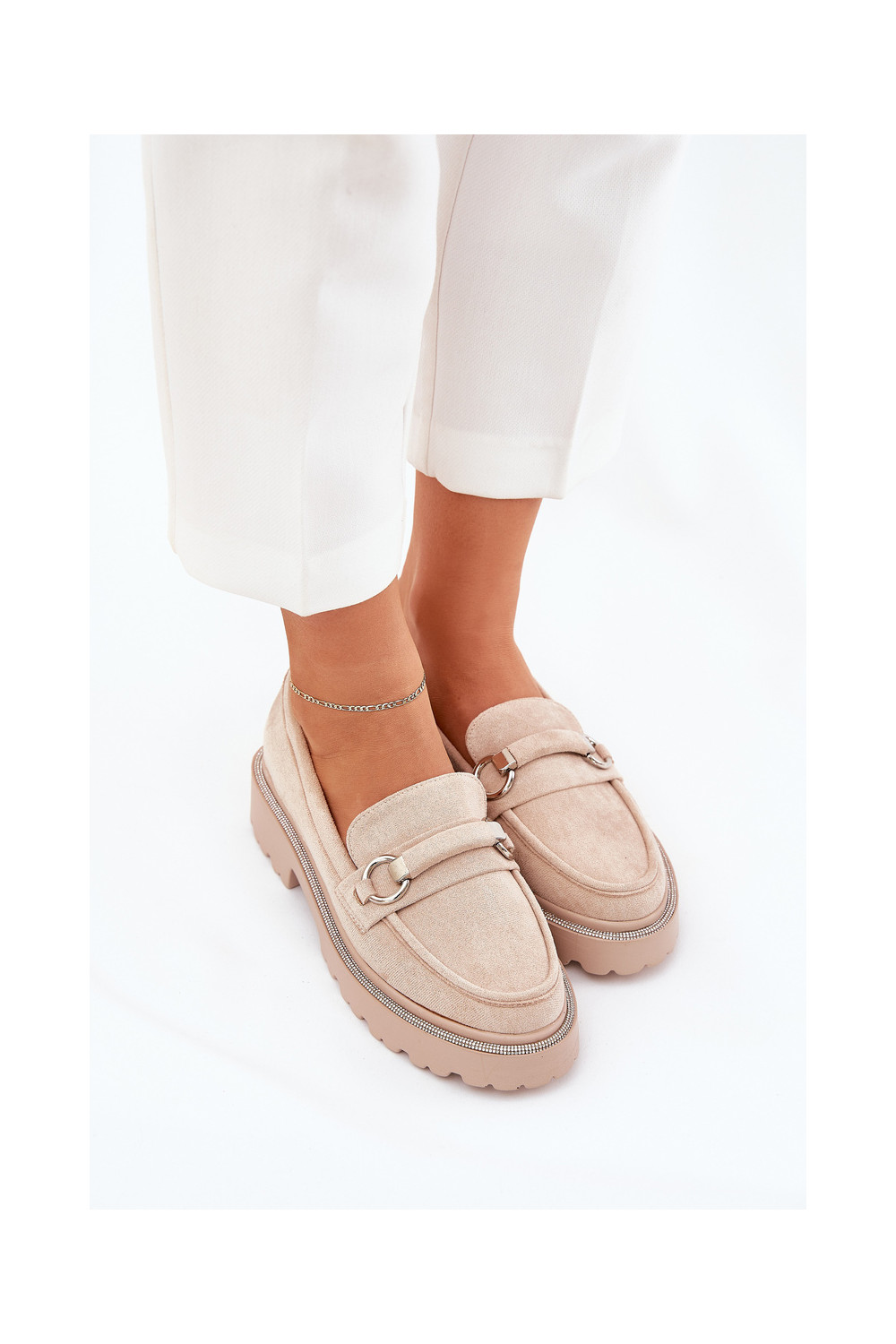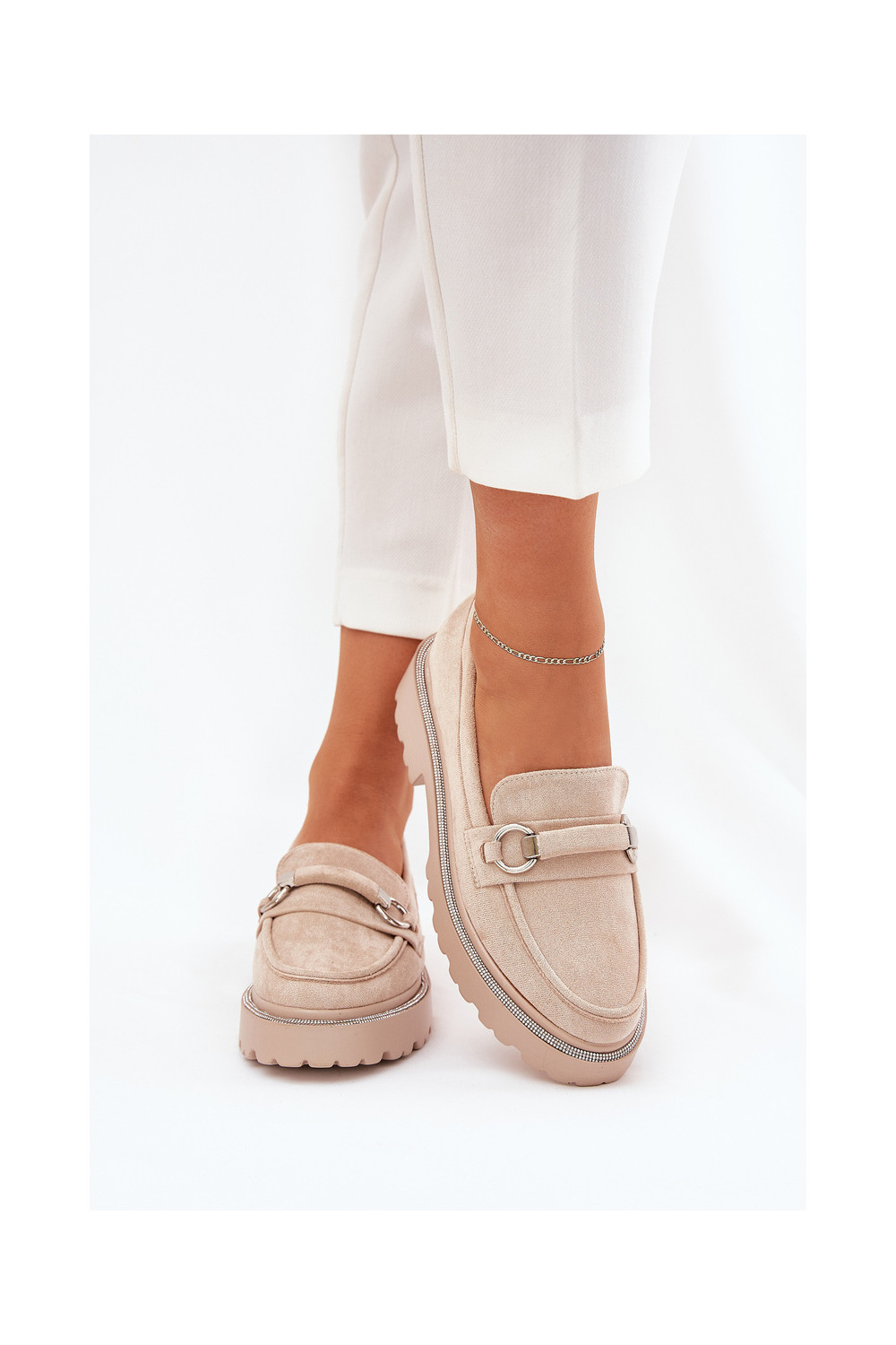 Dámské mokasíny Zdobené Cyrkoniami béžové Patina