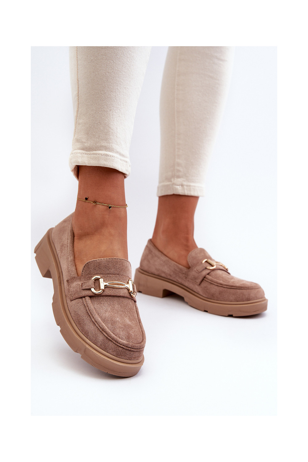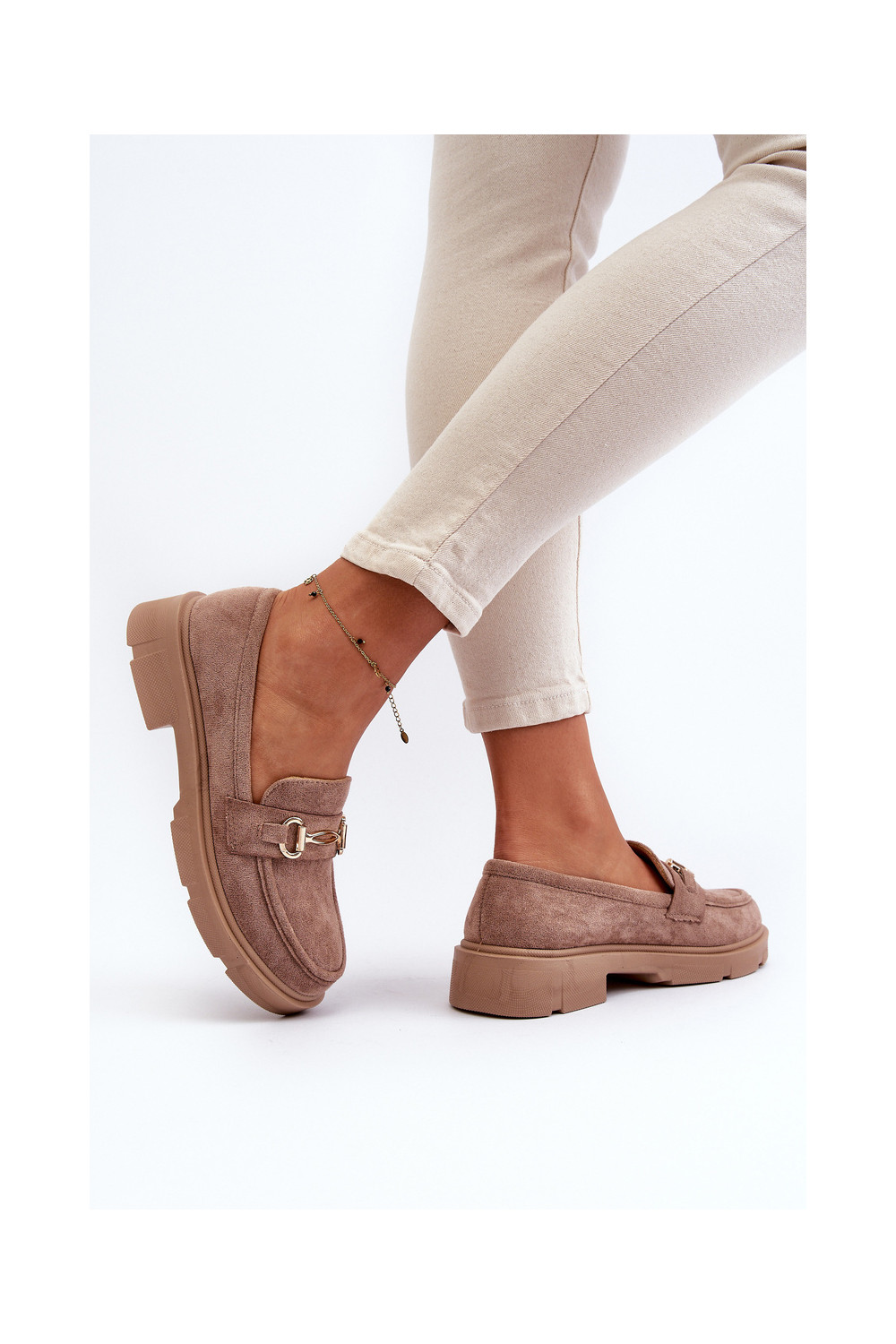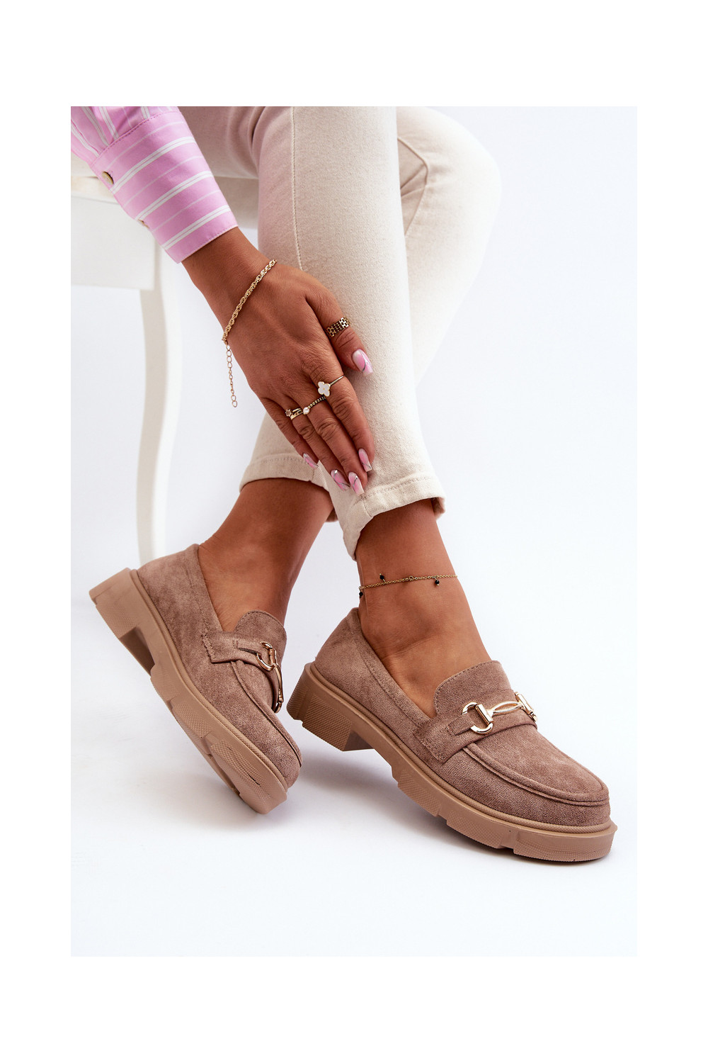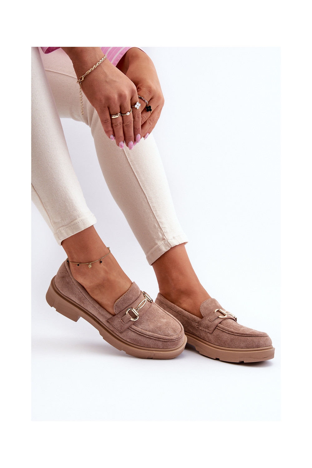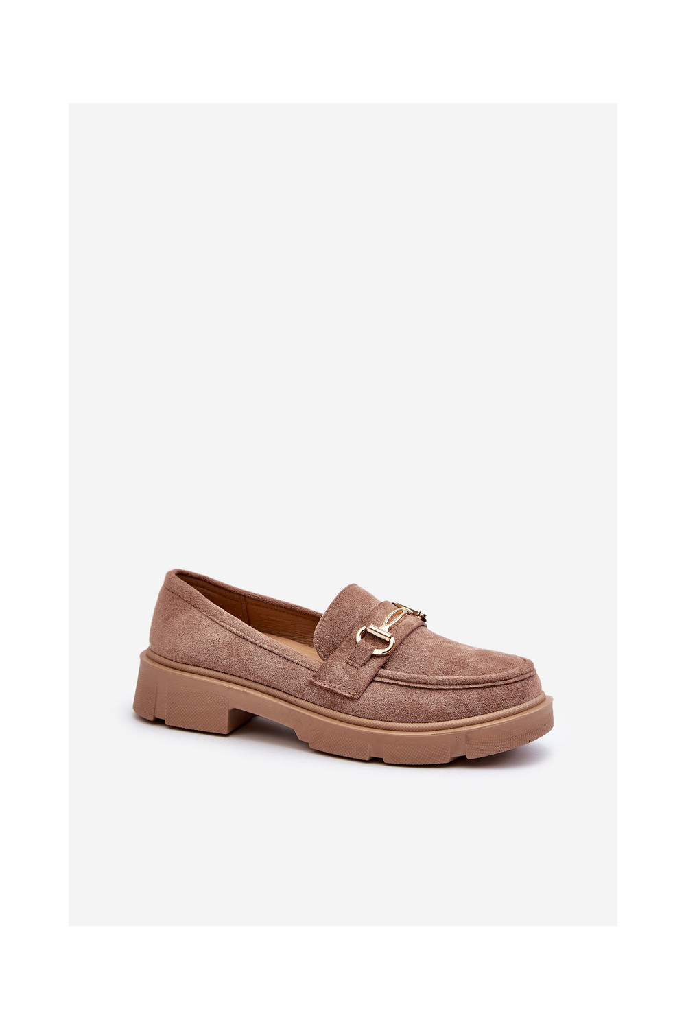 Dámské mokasíny se zlatými detaily z eko semišeowe hnědá Lighas