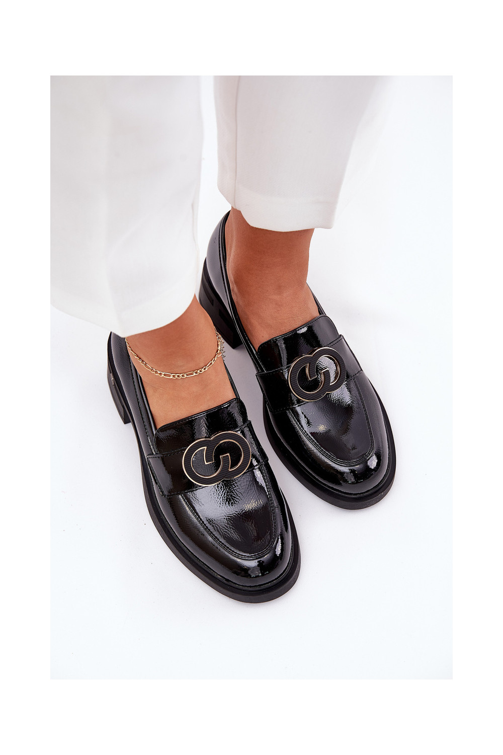 s efektem laku mokasíny s podpatky Vinceza 18102 Černé
