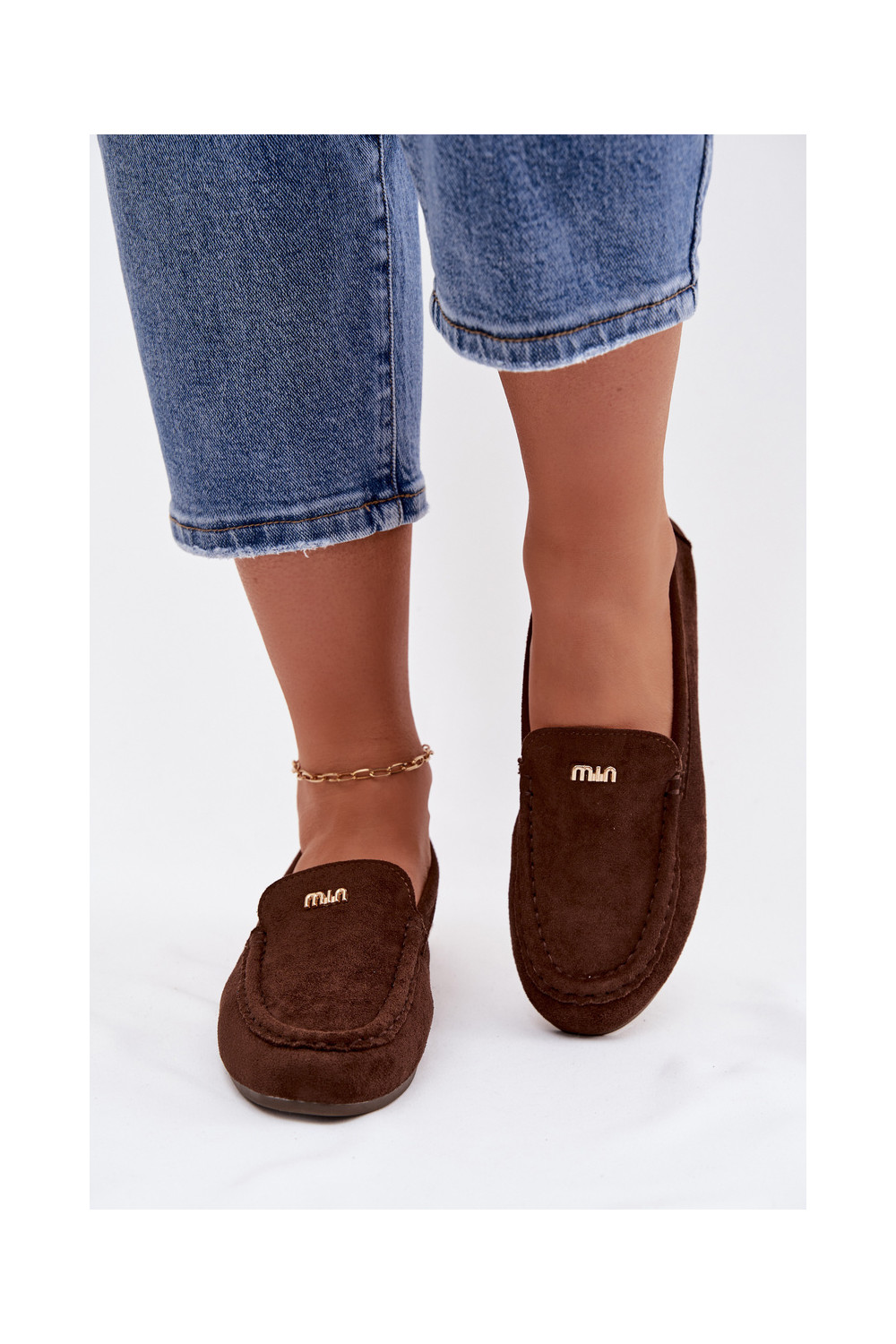 Dámské mokasíny Z m zlaté barvym Detalem Czekoladowe Sarivelle