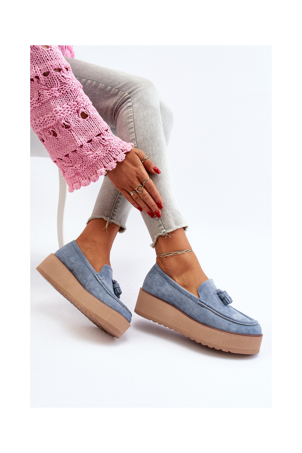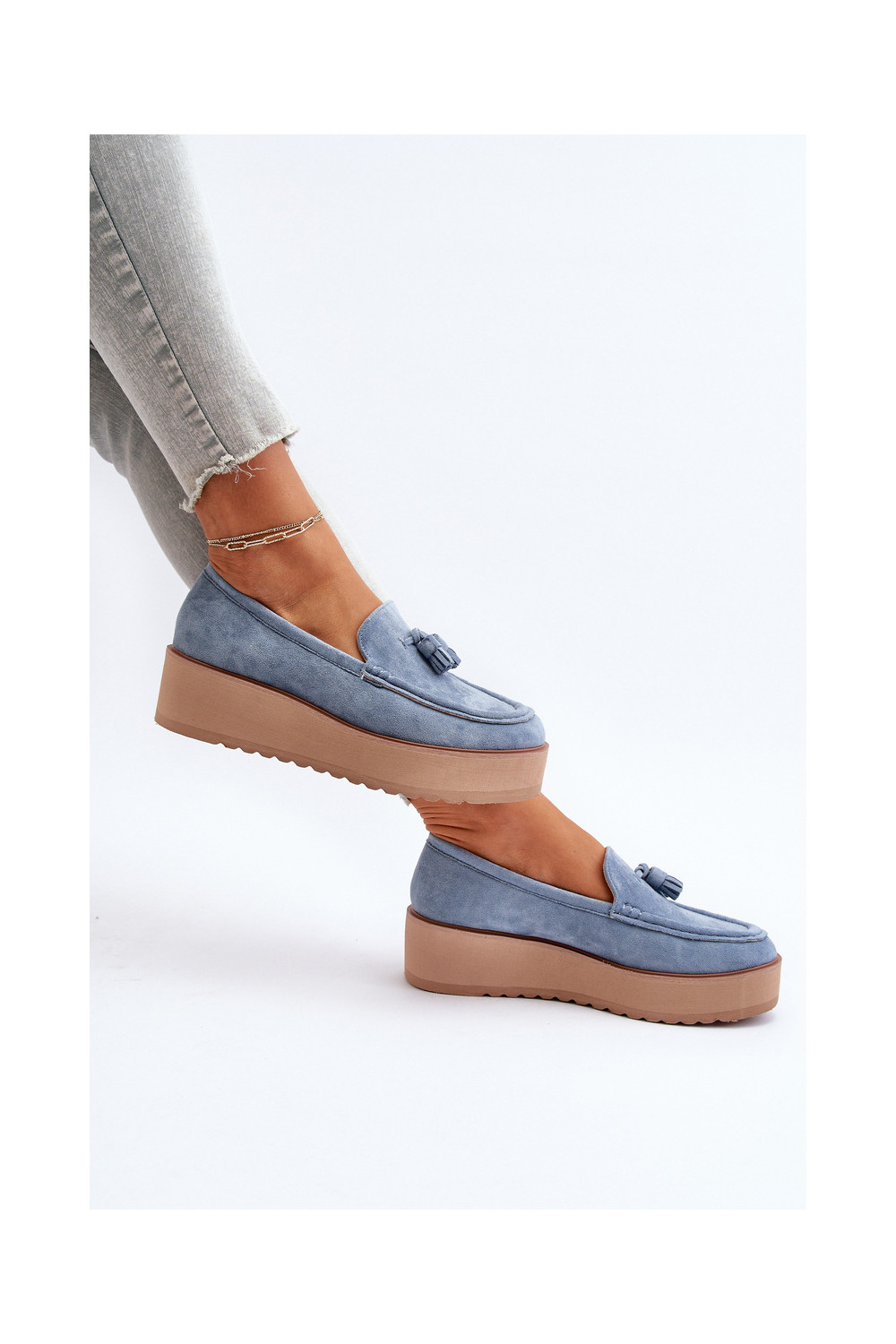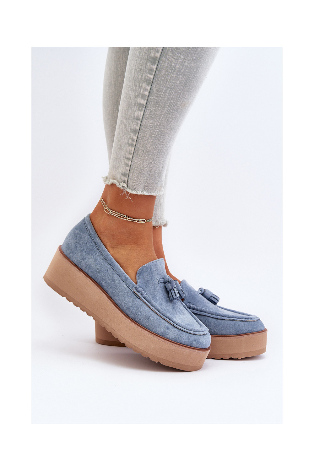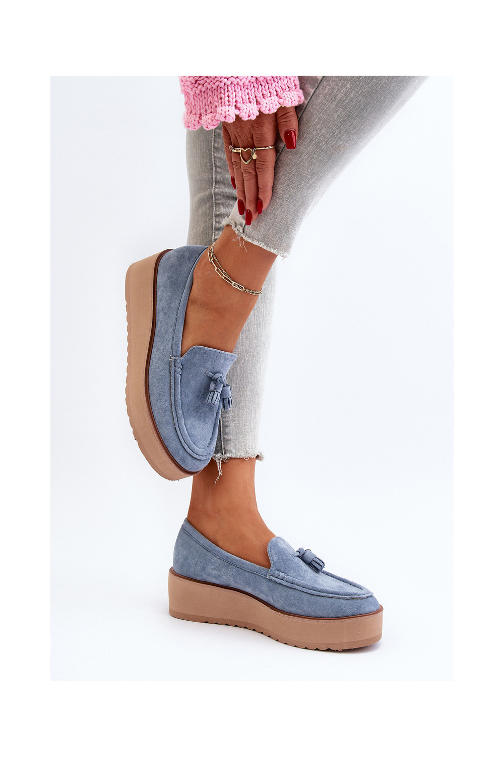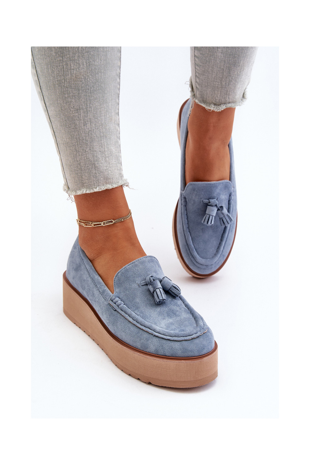 Dámské mokasíny s pozlacenou podrážkou se střapci modrá Mialani