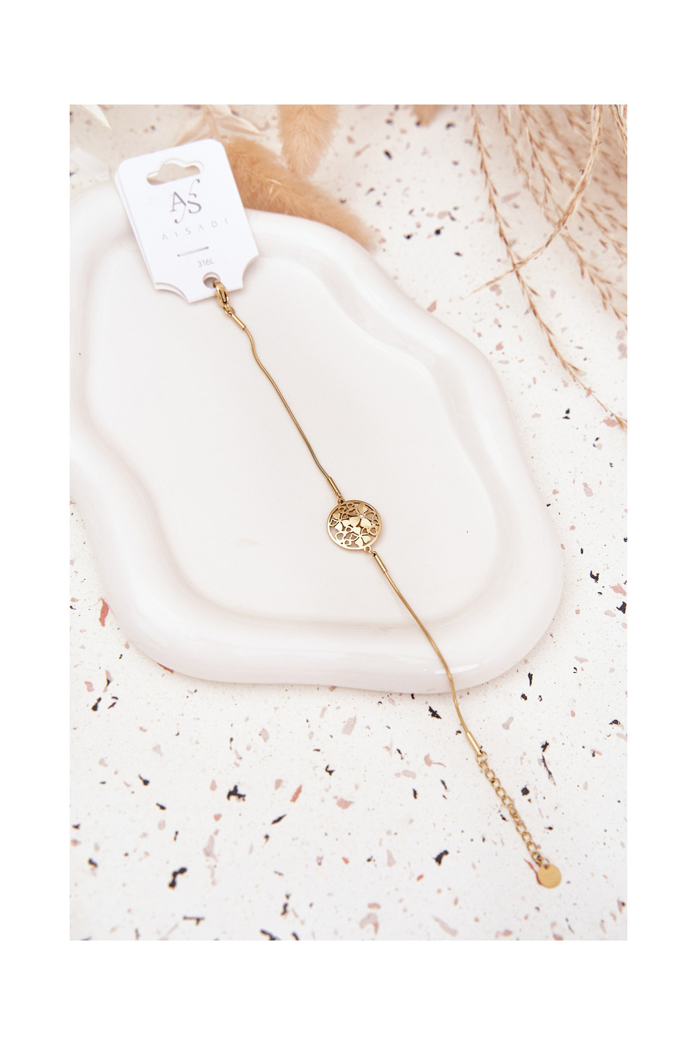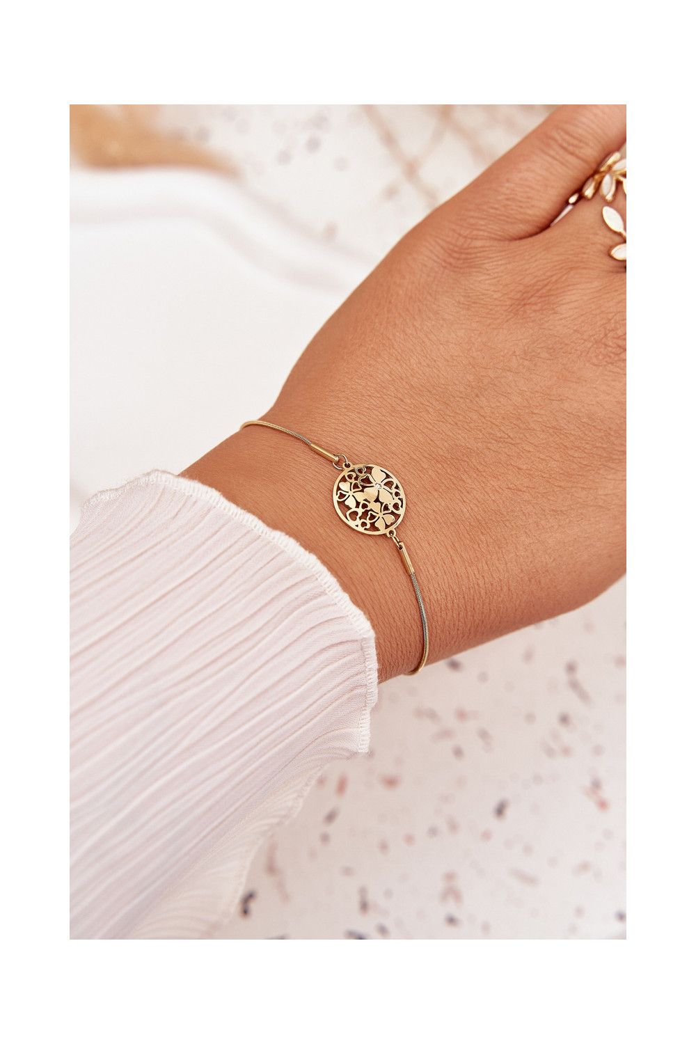 Náramek   Kółko Z s květinovými motivyuszkami zlaté barvy