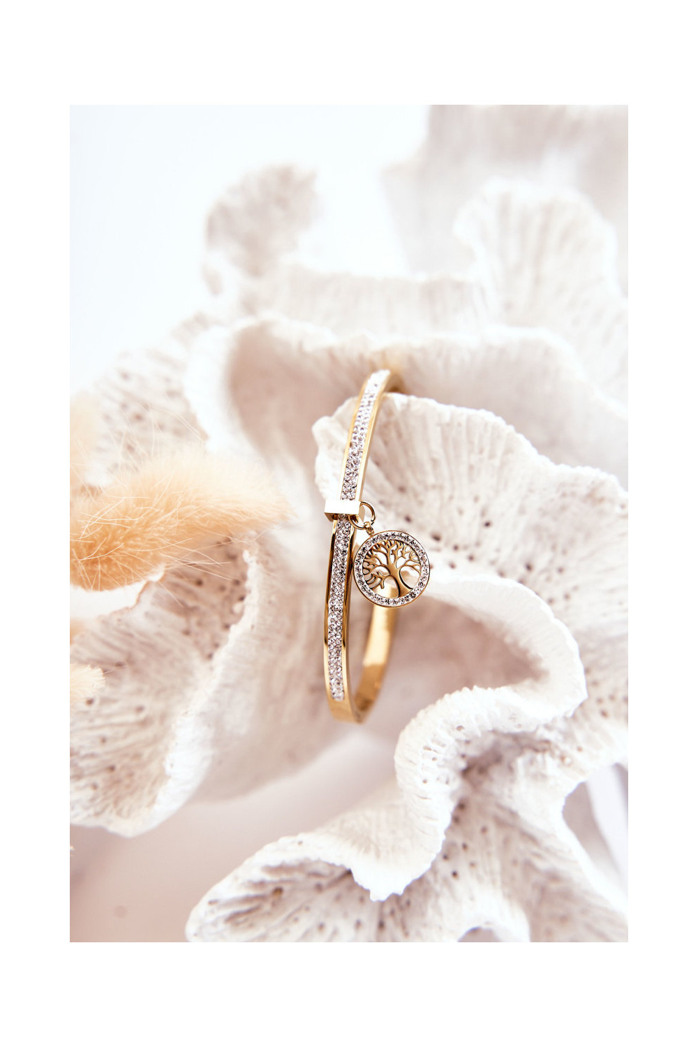 Ocelový náramek s kamínkovými očky zlaté barvy Alive