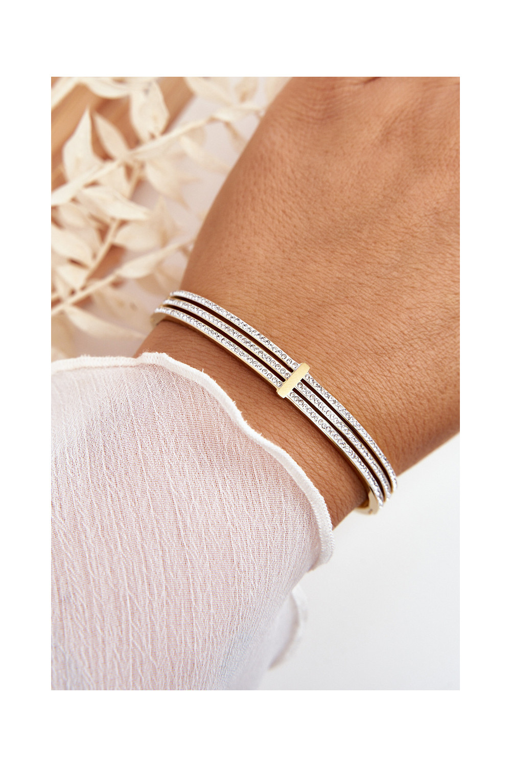 Náramek z nerezové oceli s třpytivými očky zlaté barvy