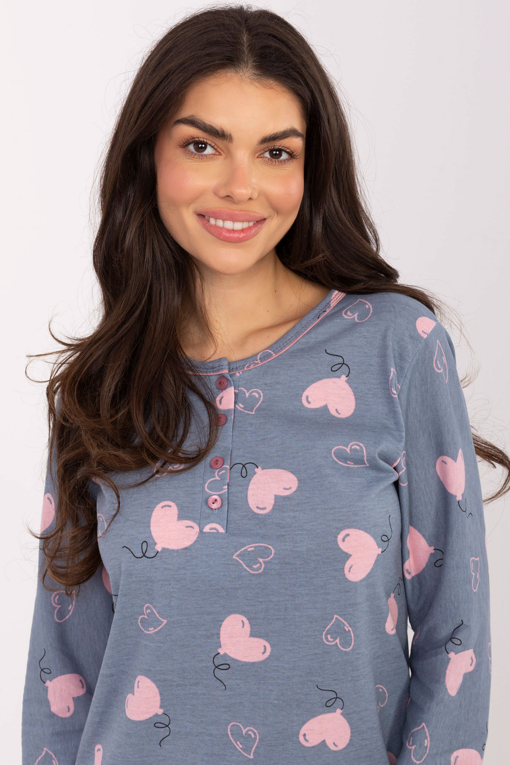 Model nosí velikost M. Rozměry modelu: výška 173 cm, prsa 90 cm, pas 64 cm, boky 91 cm.