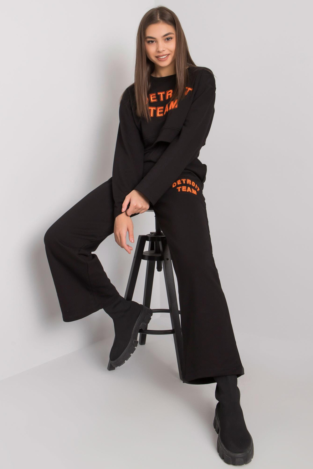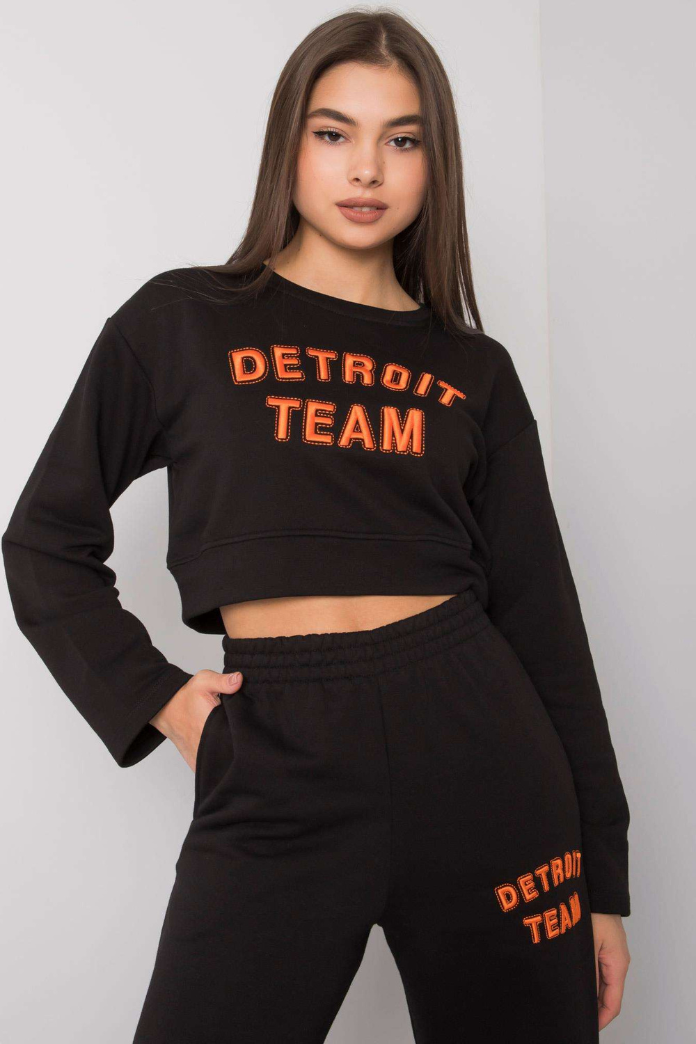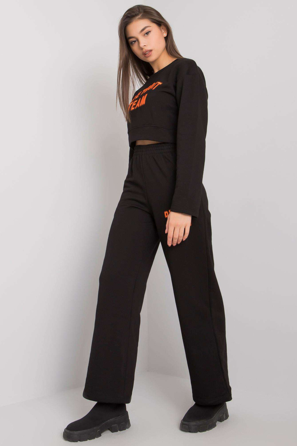 Černá bavlněná souprava Honor. Set obsahuje: mikinu, materiál kalhot složení: 68% bavlna, 32% polyester způsob praní: praní v pračce na 30°C Modelka má na sobě velikost S. Rozměry modelky: výška 172 cm, prsa 88 cm, pas 61 cm, boky 92 cm. D