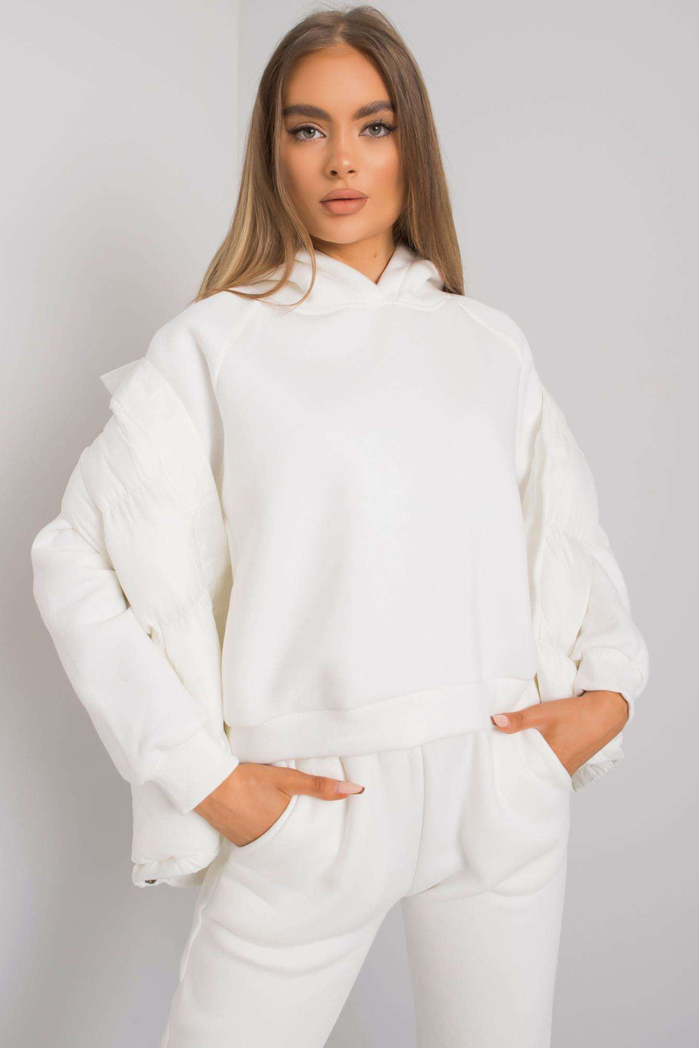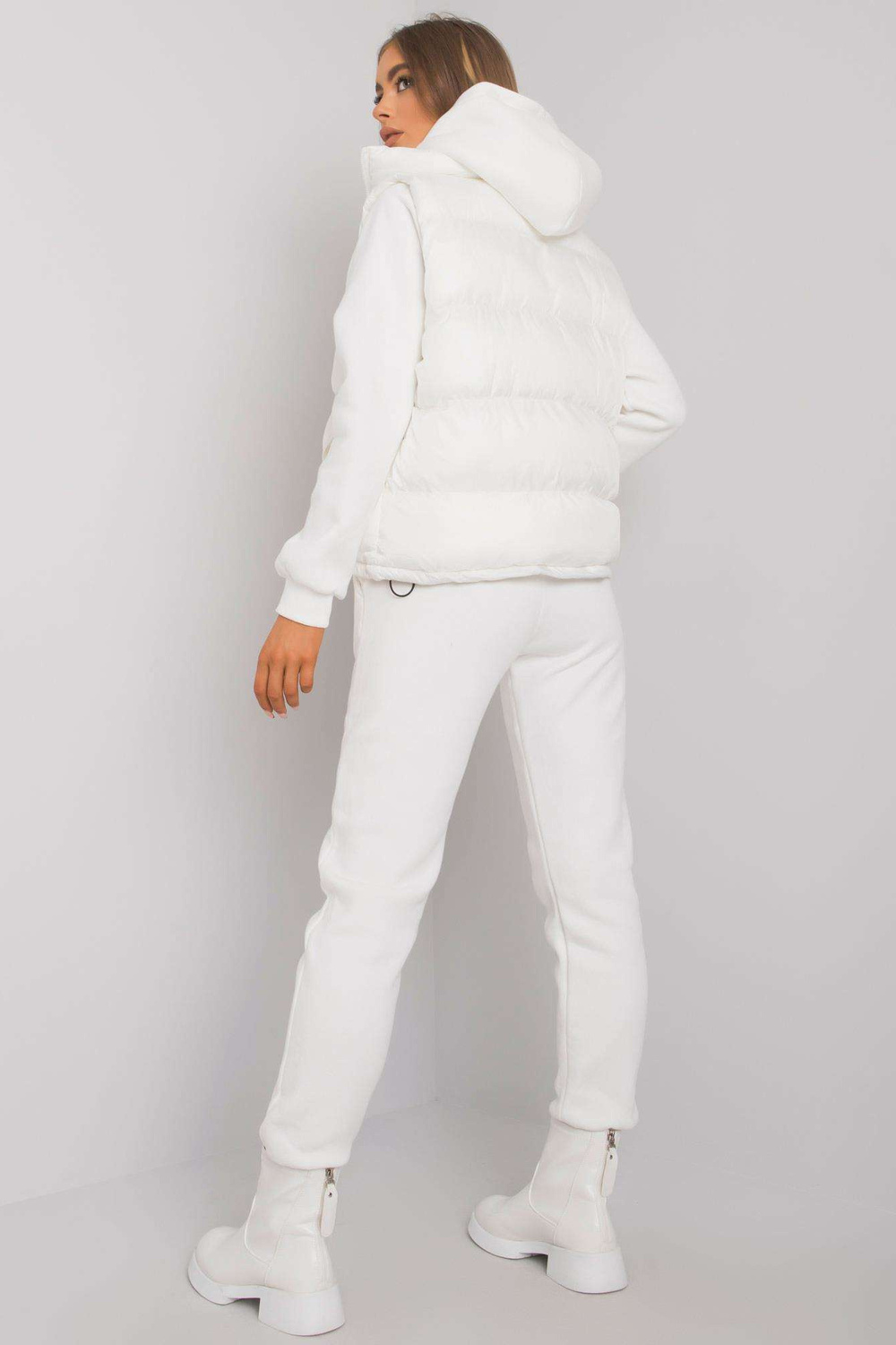 Bílá sada s vestou Aysel. set obsahuje: mikinu, tepláky, péřovou vestičku materiál složení: teplákové soupravy - 70% bavlna, 30% polyester; vesta - 100% polyester způsob praní: praní v pračce na 30°C Modelka má na sobě velikost S/M. Rozměry modelu: výška 174 cm,