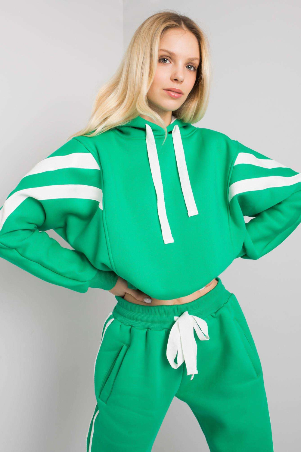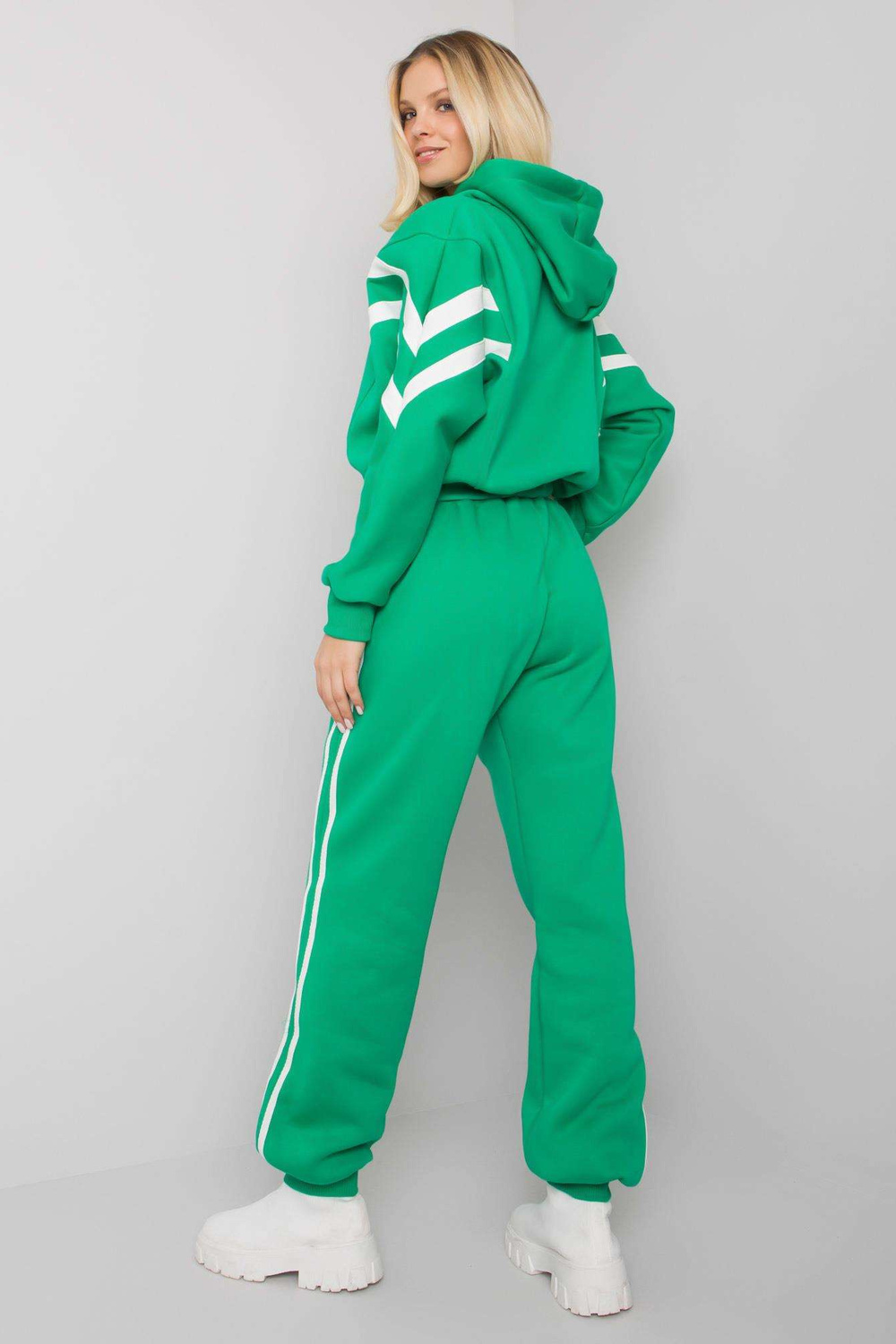 Rozměry kompletu ve velikosti S/M měřeny naplocho: šířka v podpaží - 68 cm, délka mikiny - 52 cm, délka rukávu - 64 cm, šířka pasu - 35 cm, délka nohavice - 106 cm