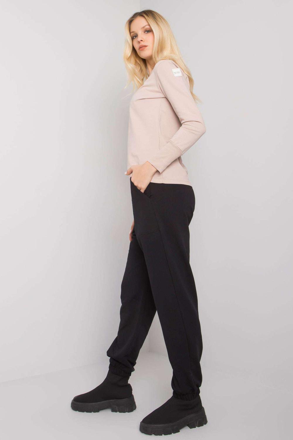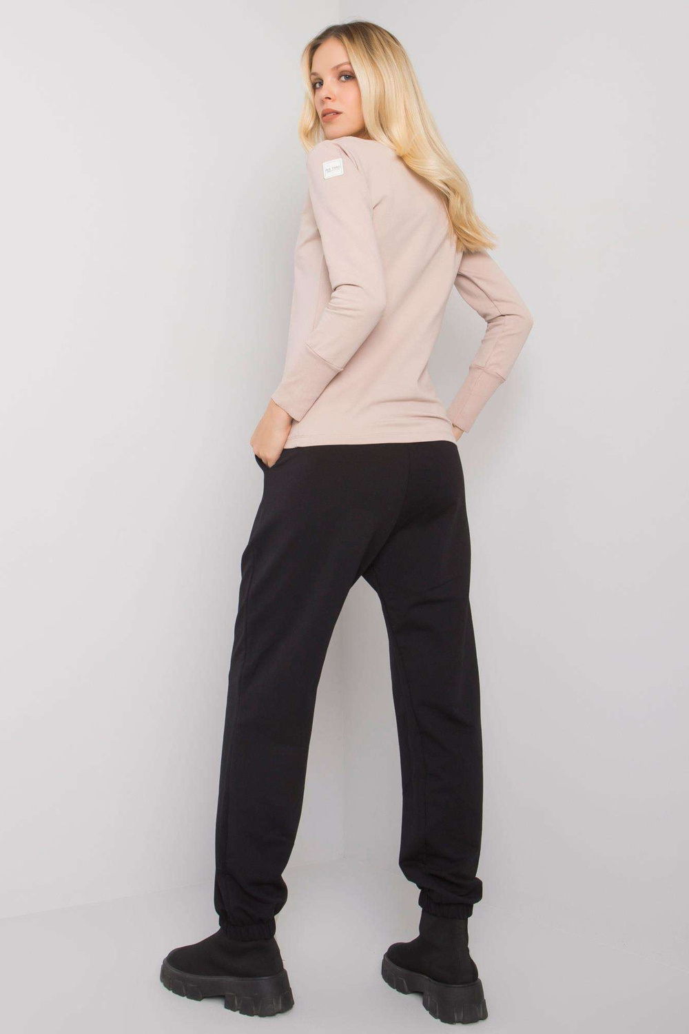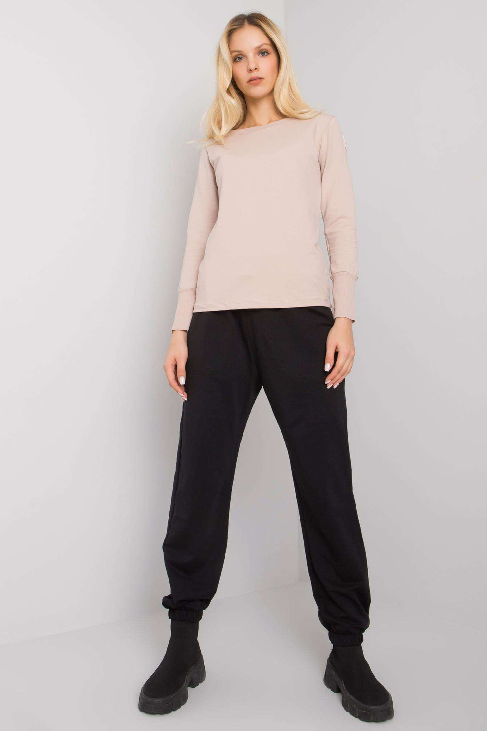 Černo-béžová dámská ležérní souprava Atalaya RUE PARIS. Sada obsahuje: mikinu, materiál kalhotysložení: 90% bavlna, 10% elastan způsob praní: praní v pračce na 30°C Kód produktu: RV-KMPL-7338.07X dominantní vzor: bez vzoru Styl: ležérní, sportovní o