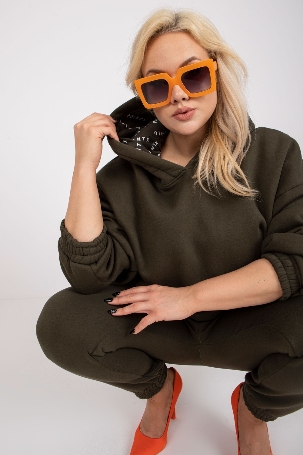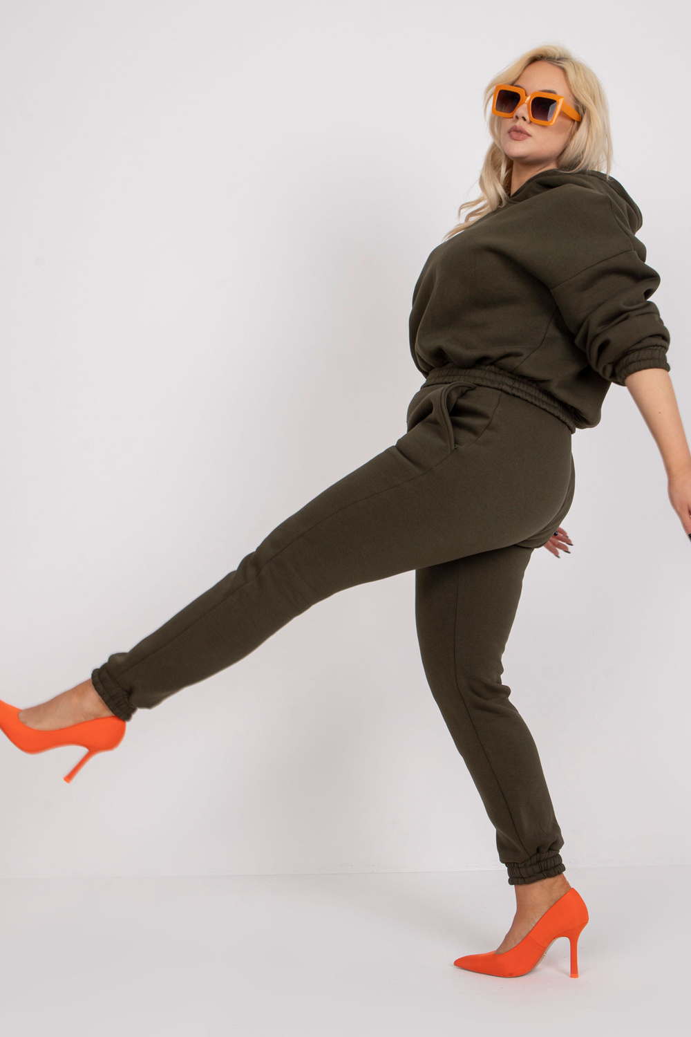 Khaki mikina plus size set s kalhotami.