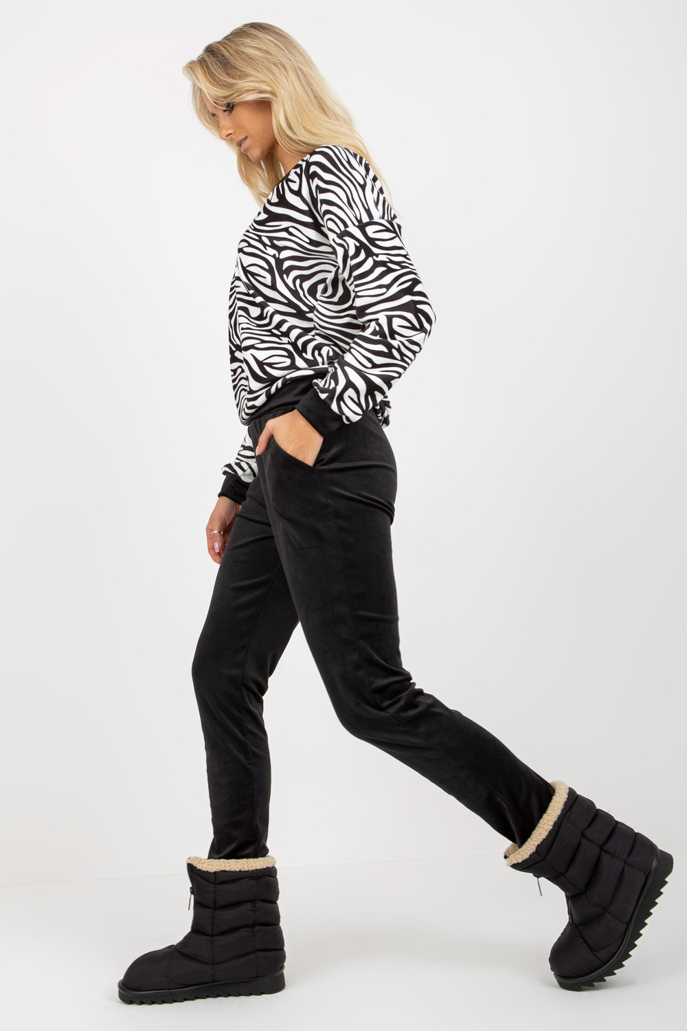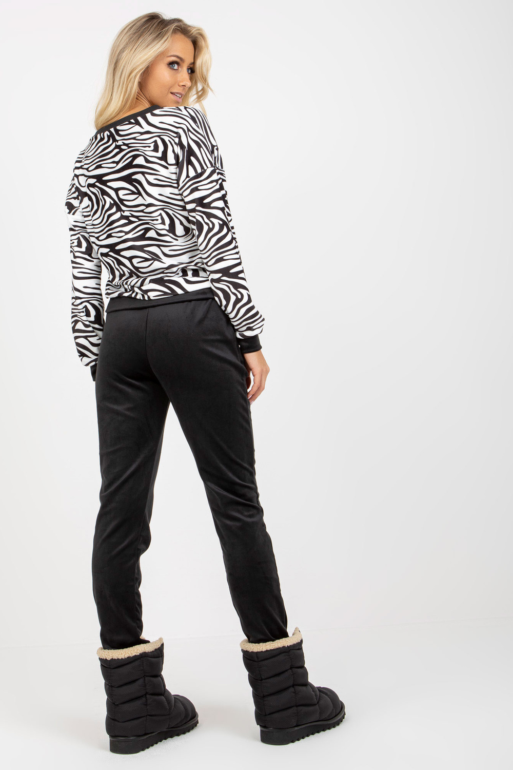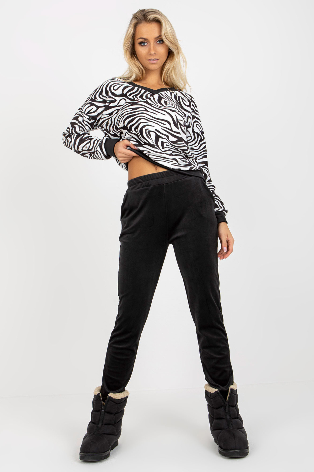 Sada bílého a černého Velours mit einem Sweatshirt in Tiermuster RUE PARIS.