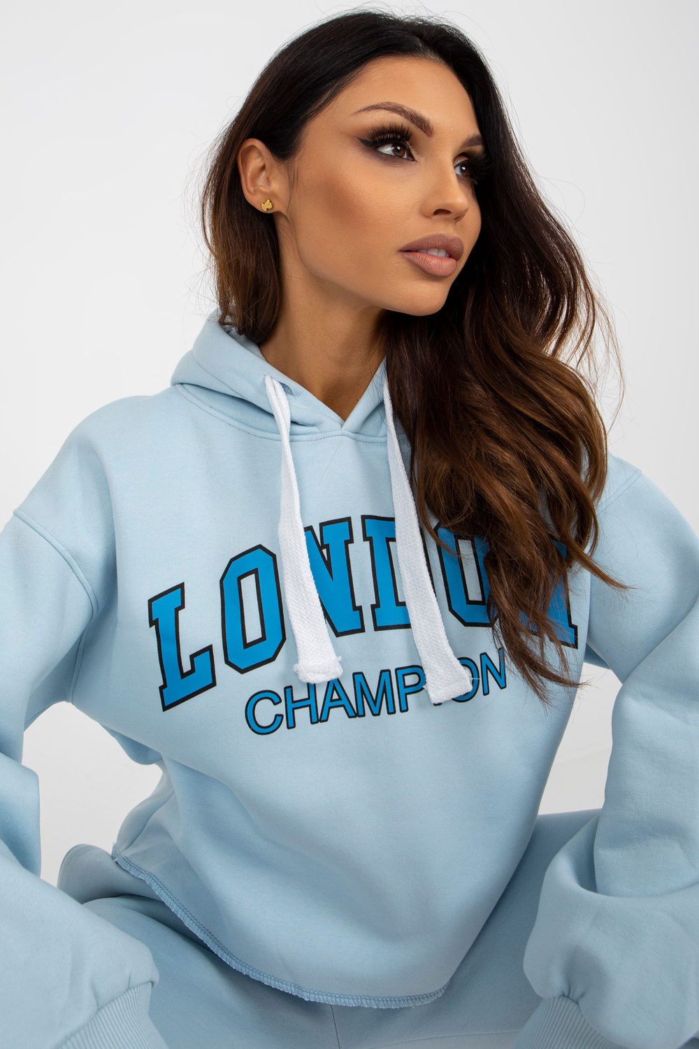 Světle modrá a modrá tepláková souprava s potiskem Laraina.